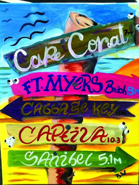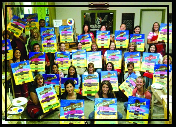 “We get people from Punta Gorda, Port Charlotte, Marco Island, East Naples, Sanibel, Fort Myers Beach and Cape Coral all the time,” Mercedes said. “Everything needed to create a masterpiece is included when you walk in the door the aprons, the paint, the supplies, the canvas everything. And we set up and clean up, so you don’t have to worry about anything but having a fun time out. We encourage everyone to just come out and have a fun time while making something that you get to take home and enjoy.”