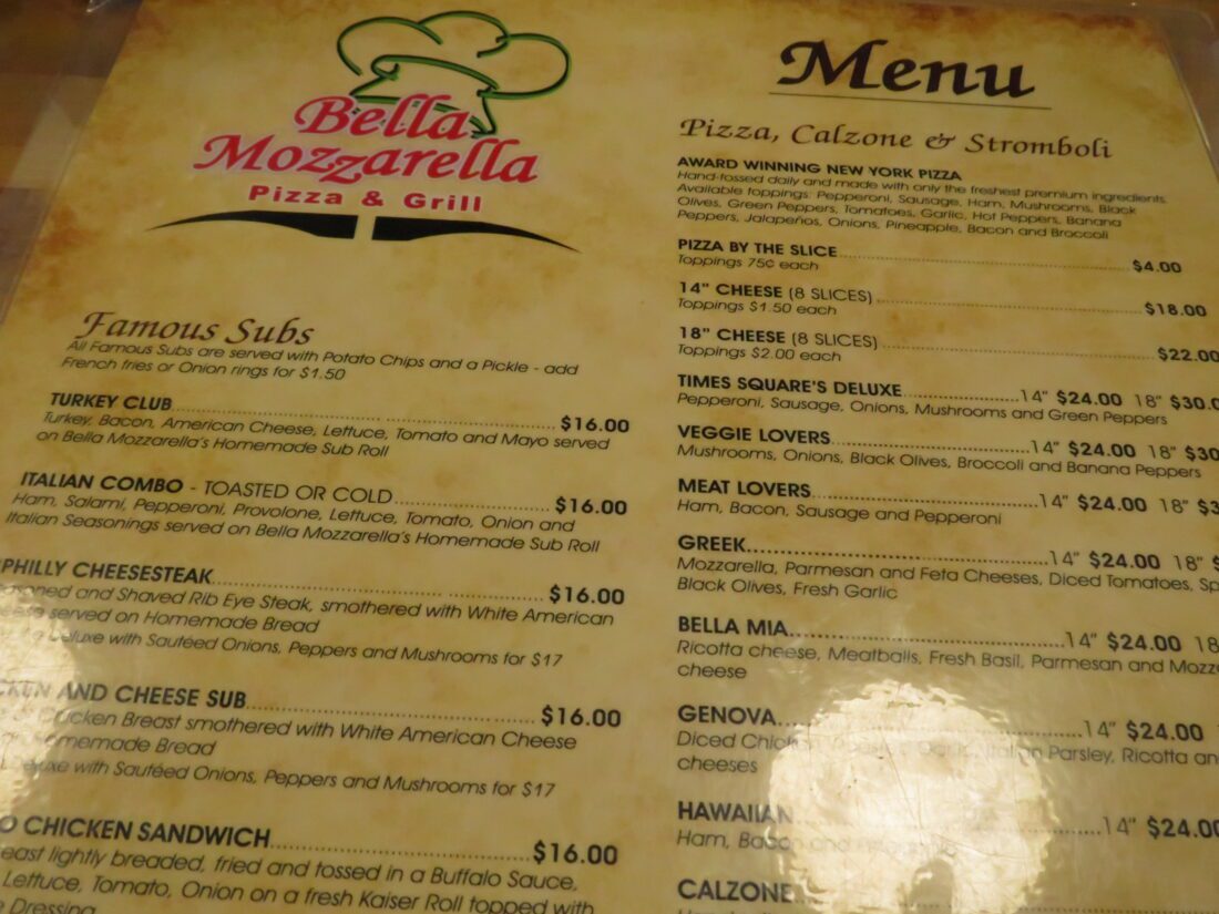 Bella Mozzarella Pizza & Grill is open daily from 11 a.m. to 9 p.m.