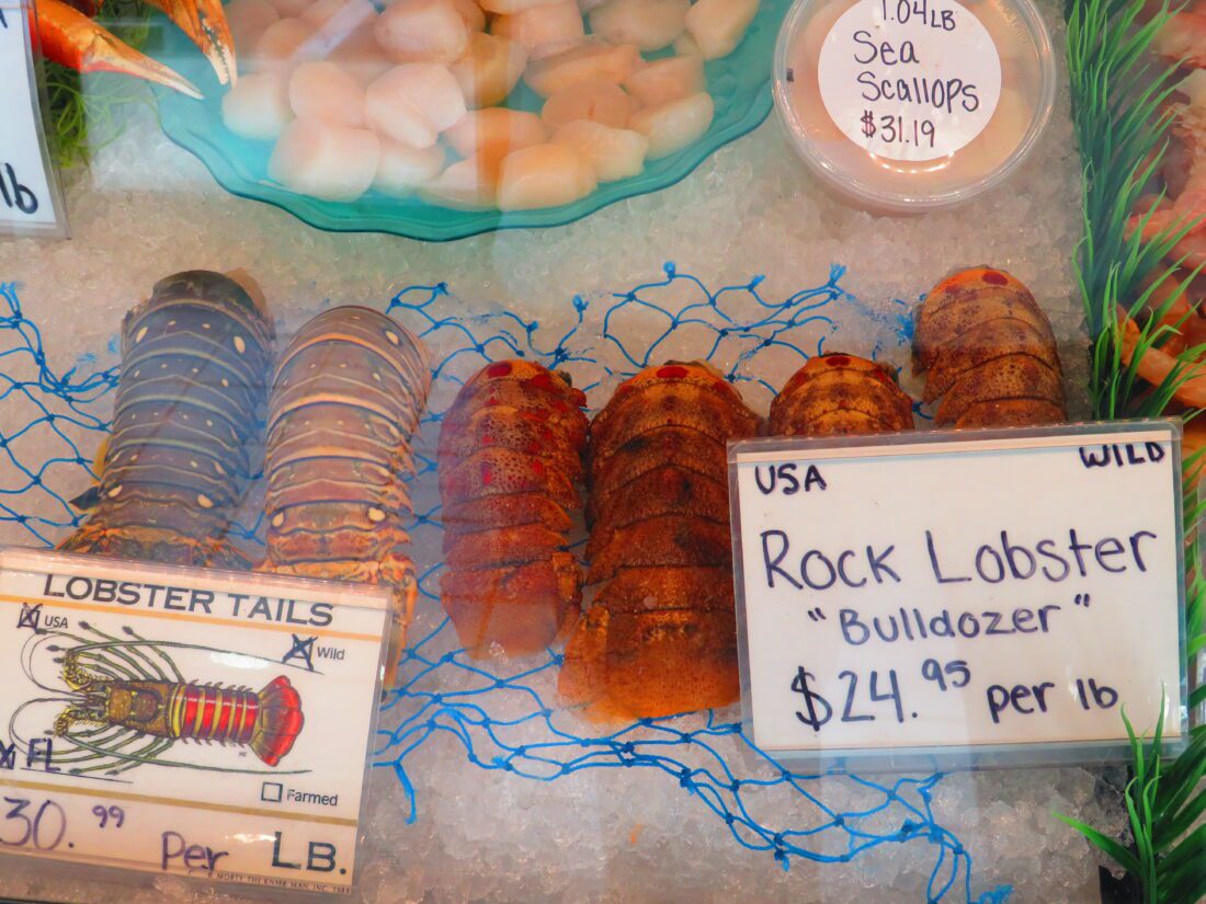 Rock lobster tails nicknamed “bulldozer” are also in the house.
