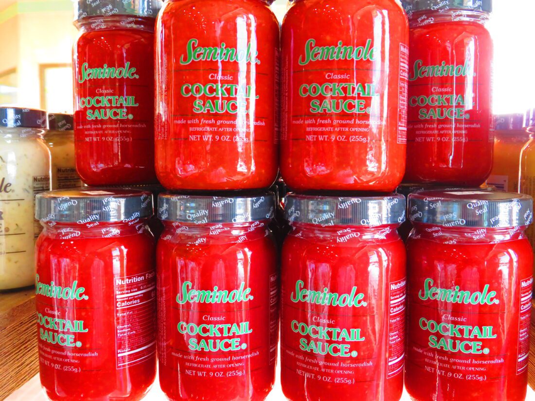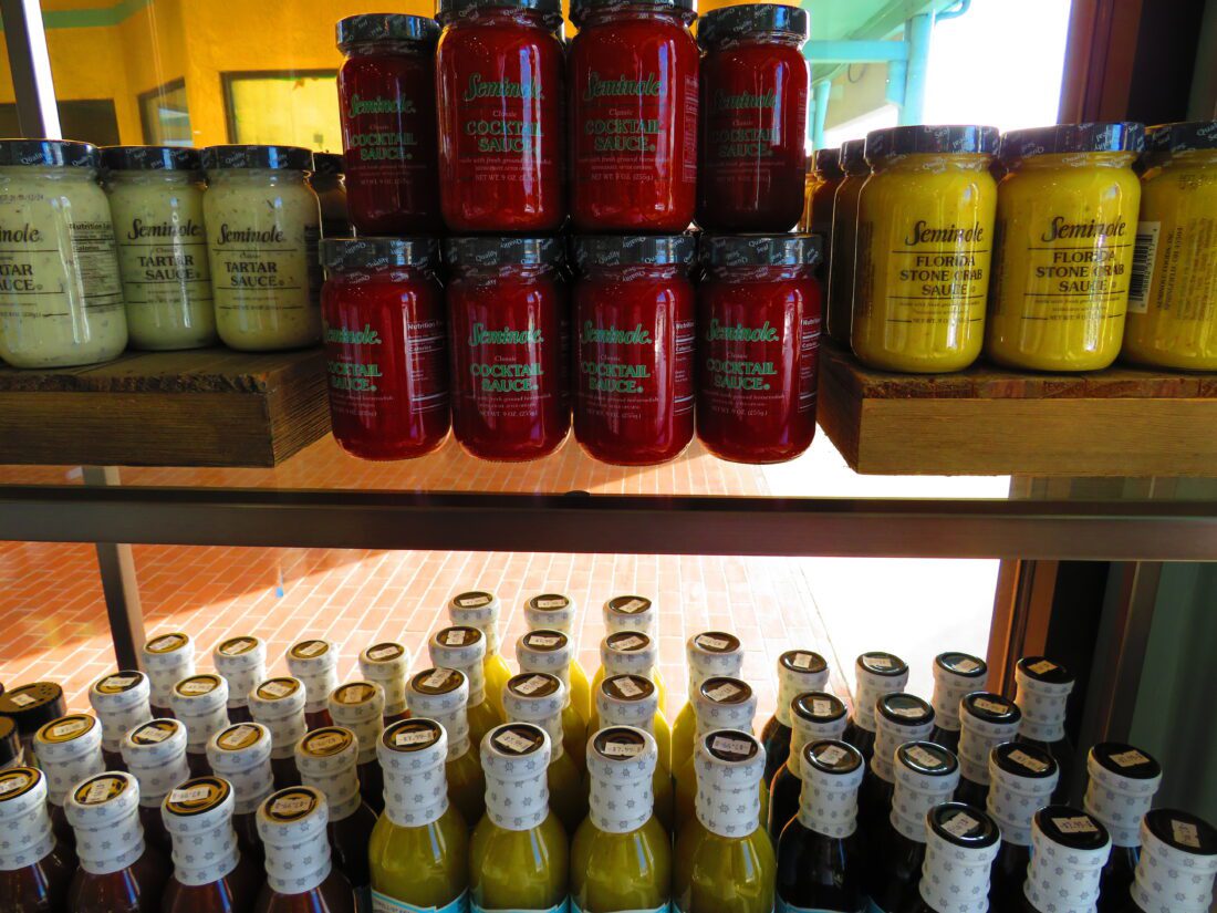 The smoked fish and smoked dip is also local. Even some of the seasonings and sauces inside the store are Florida made, or from the South. They include a number of seasonings and sauces you won’t find in most of the popular supermarkets or grocery stores. Among the seasonings, spices and sauces from the region include Everglades’ Rub, Everglades’ Moppin BBQ Sauce, Seminole Cocktail Sauce and Seminole Florida Stone Crab Sauce.