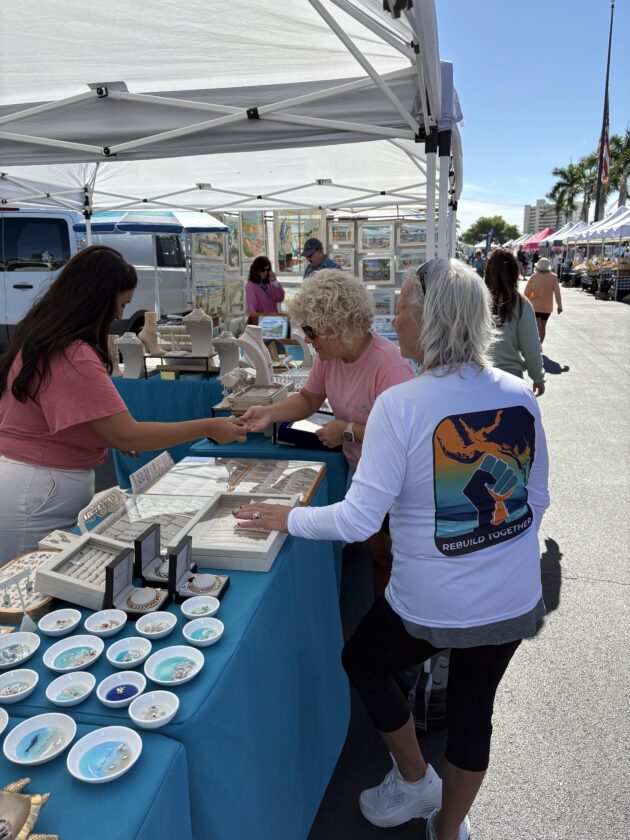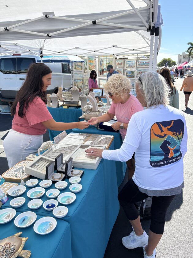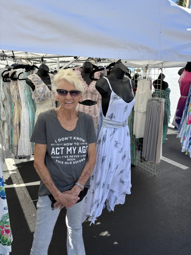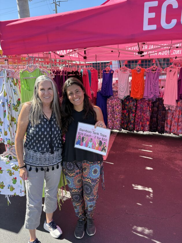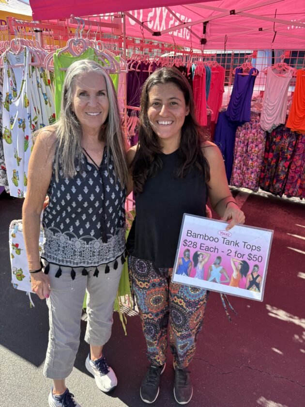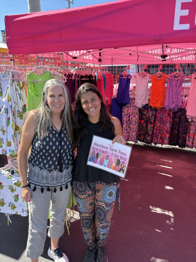 Fort Myers Beach Markets organizer Linda Miller (left) with Emily Gonzalez or Yogas. Photo by Nathan Mayberg