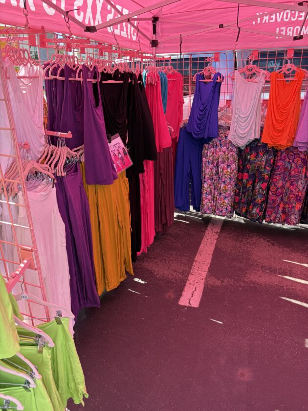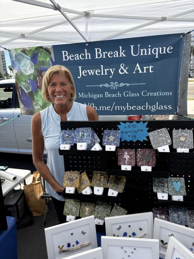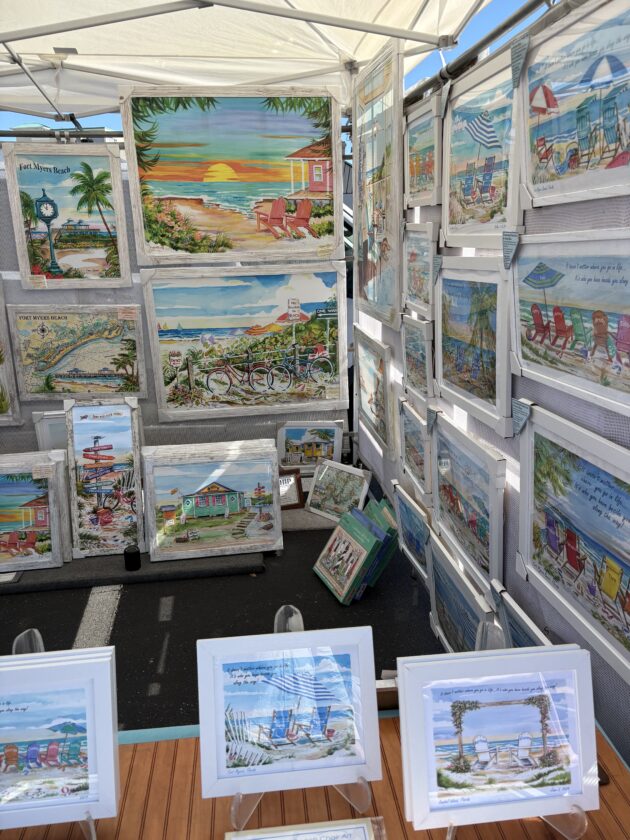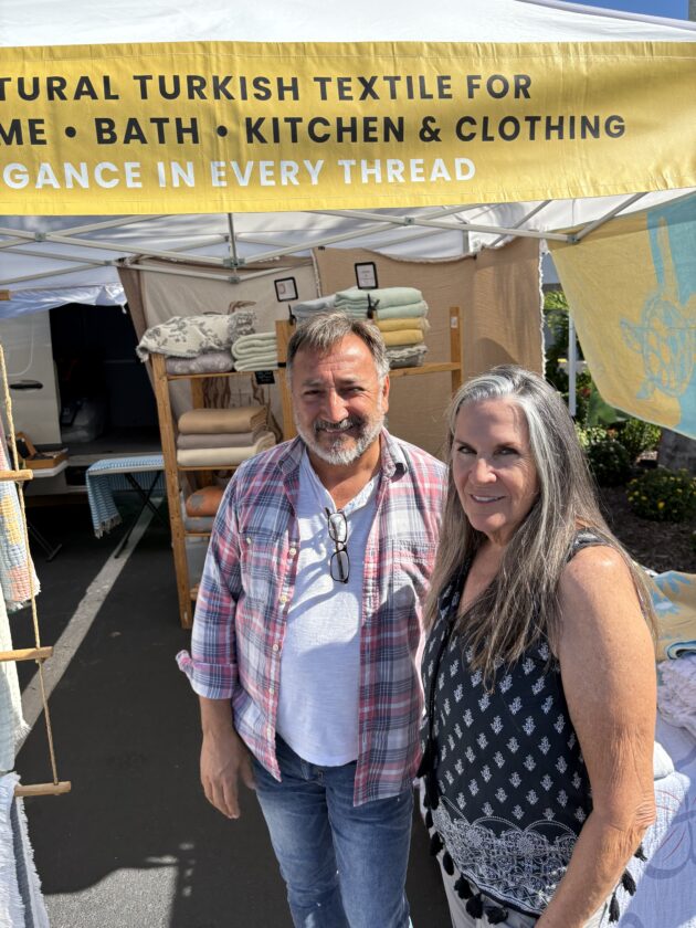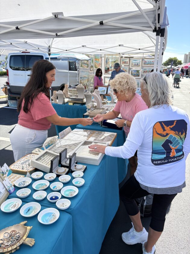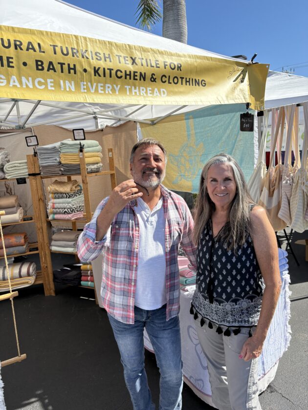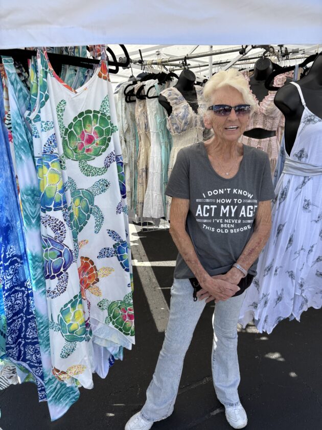 Fort Myers Beach Markets organizer Linda Miller (left) with Emily Gonzalez or Yogas. Photo by Nathan Mayberg