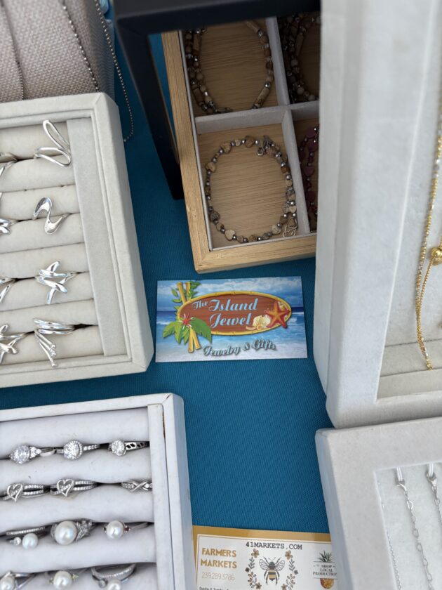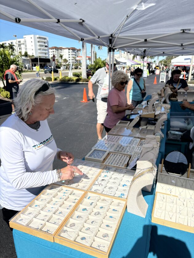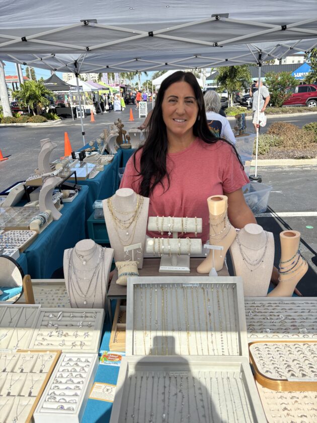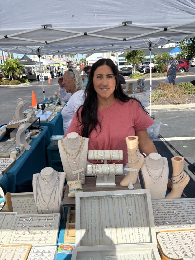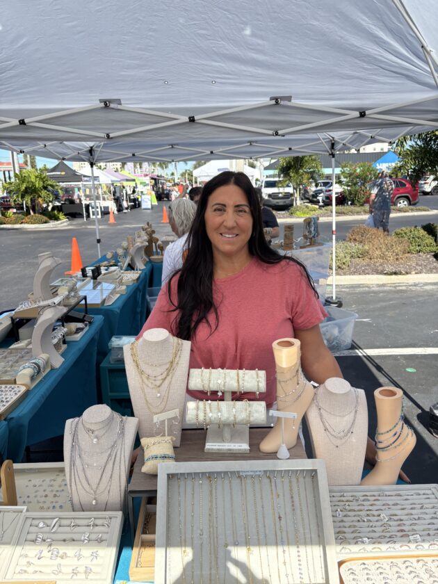 Maria Carlini, who owns Bonita Beach Jewelers, is always busy at the Island Jewel booth at the Santini Marina Plaza farmer's market. Photo by Nathan Mayberg