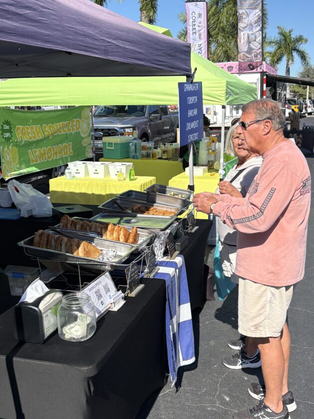 Bob and Mary Anderson, of Bonita Springs and Michigan, are regular customers of the Greek food of Pikilia at Santini Farmer's Market.