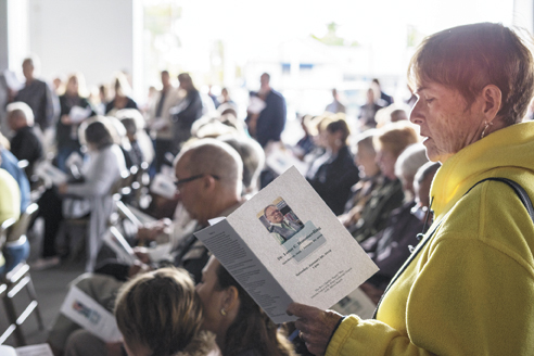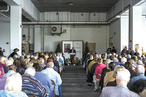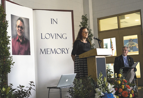 Sunlight and the strong scent of lillies washed over the somber room as speakers shared their memories of Hommerding.