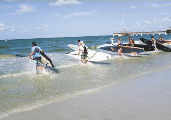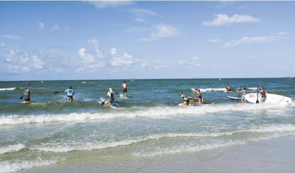 For the 7- and 2-mile races, 54 entrants using stand up paddle boards, surf skis, and outrigger canoes competed in a number of heats. Racers navigated their crafts around a number of buoys placed by race officials.
