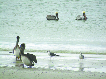Identifying the birds can sometimes be difficult, particularly when it comes to separating different species. Leg markings are often key indicators, Campbell said. The group spent a large amount of time figuring out which types of gulls were assembled at a watering hole outside the Outrigger Beach Resort. There were dozens of gulls. Roth believes he spotted four different variations though most were laughing gulls.