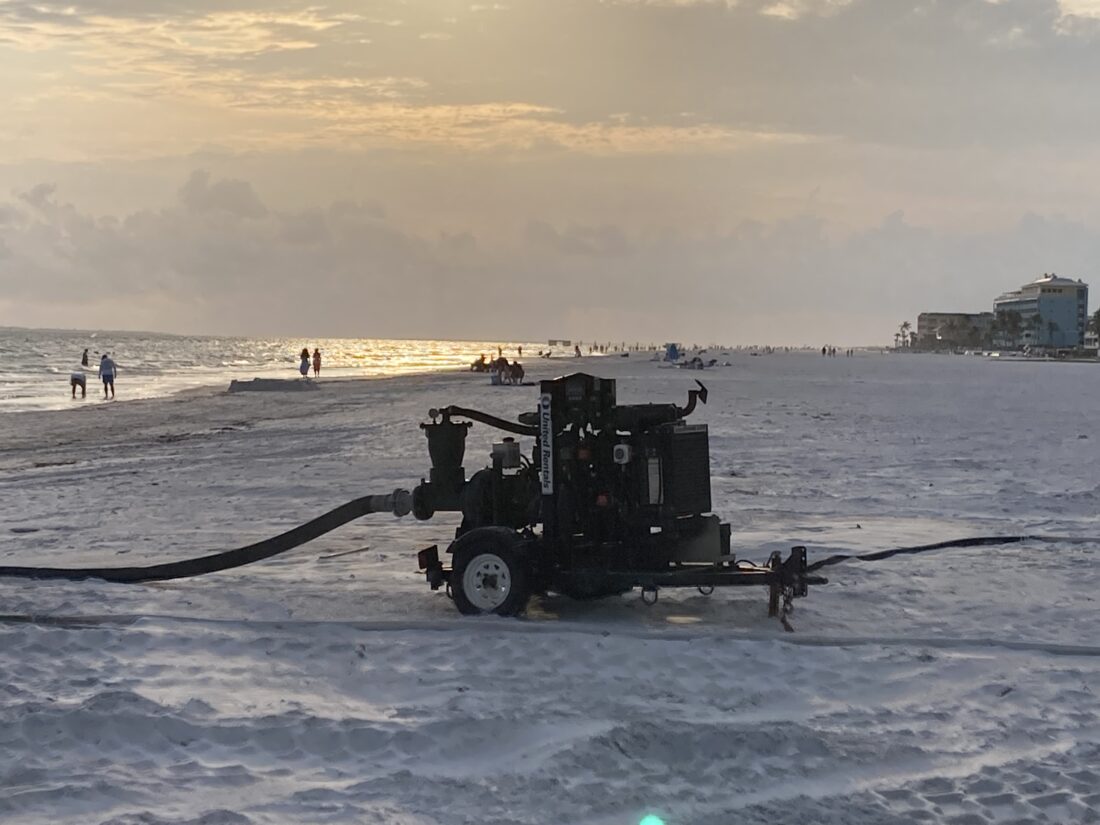 Town of Fort Myers Beach Environmental Projects Manager Chadd Chustz said the sand dredging portion of the project is now complete. “The booster pumps, equipment and sub-line from the dredge to shoreline will be removed via the Old Junkanoo lot. All equipment will be off the beach by September 3, per Ahtna,” Chustz said. “Equipment will be moved out of the Newton and Old Junkanoo properties via truck by September 10.”