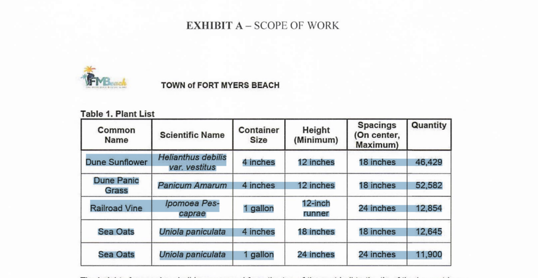 The next face of the town’s beach restoration project is to plant dunes. The town approved a $509,859 contract with EarthBalance Corporation in June for more than 100,000 plantings across the beach. The contract was signed this month and calls for 52,582 plantings of grass panicum amarum, 46,429 plantings of dune sunflower, 12,854 plantings of railroad vine ipomoea pescaprae and more than 24,000 plantings of sea oats.