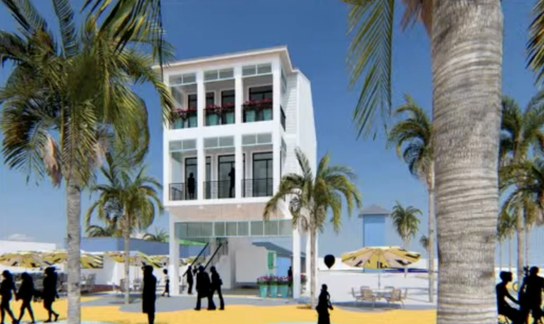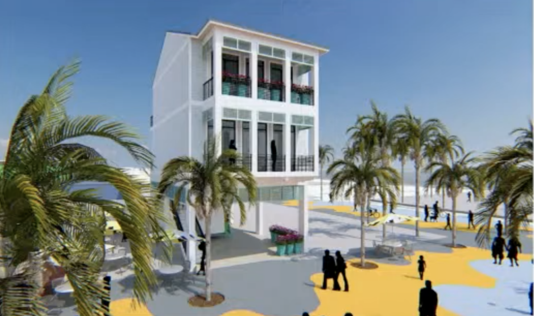 The building would be located on approximately 1,119 square feet with a three-story building totaling about 2,787 square feet. The ice cream shop would occupy about 1,000 feet of space on the ground level in a mobile unit that could be removed in the event of a major hurricane. A residential apartment would be constructed on the second and third floor.
