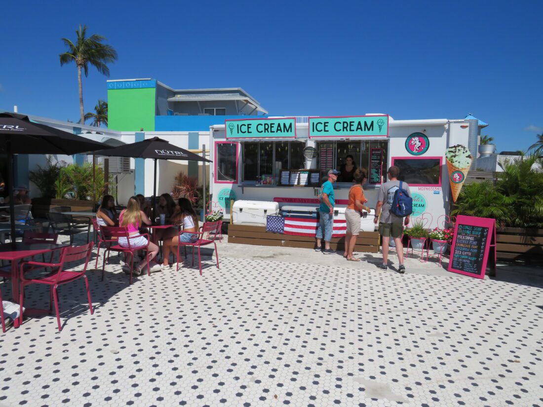 The owners of Bella Mozzarella Pizza & Grill at Times Square have proposed a new building to house Meli’s Ice Cream next door on Fort Myers Beach. Photo by Nathan Mayberg