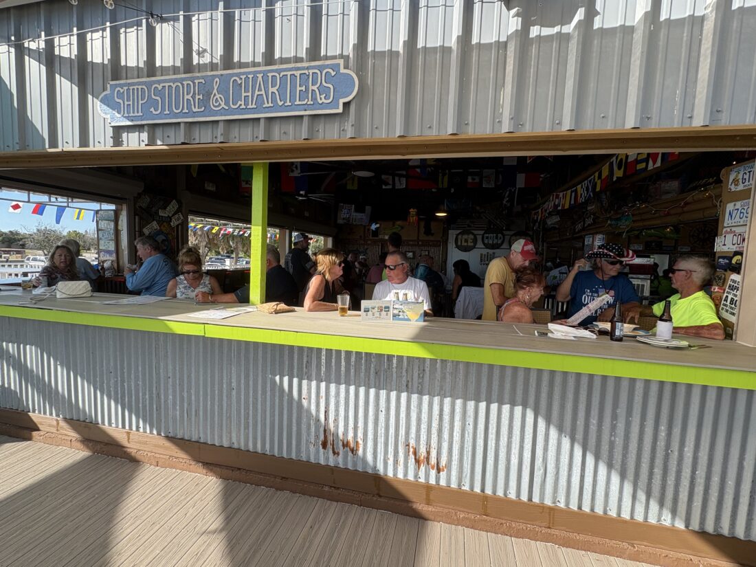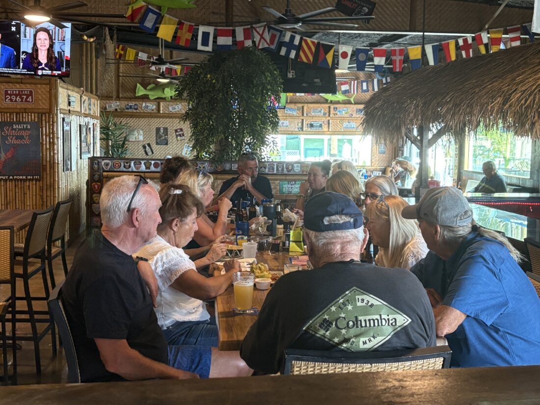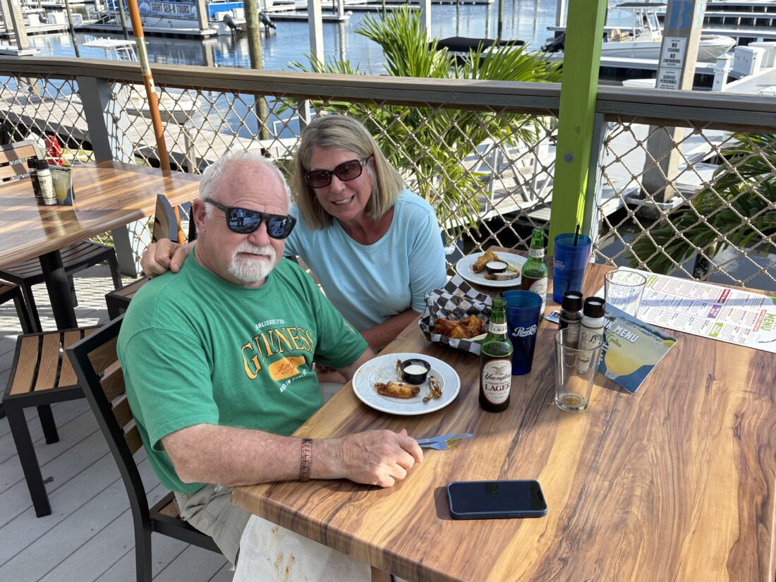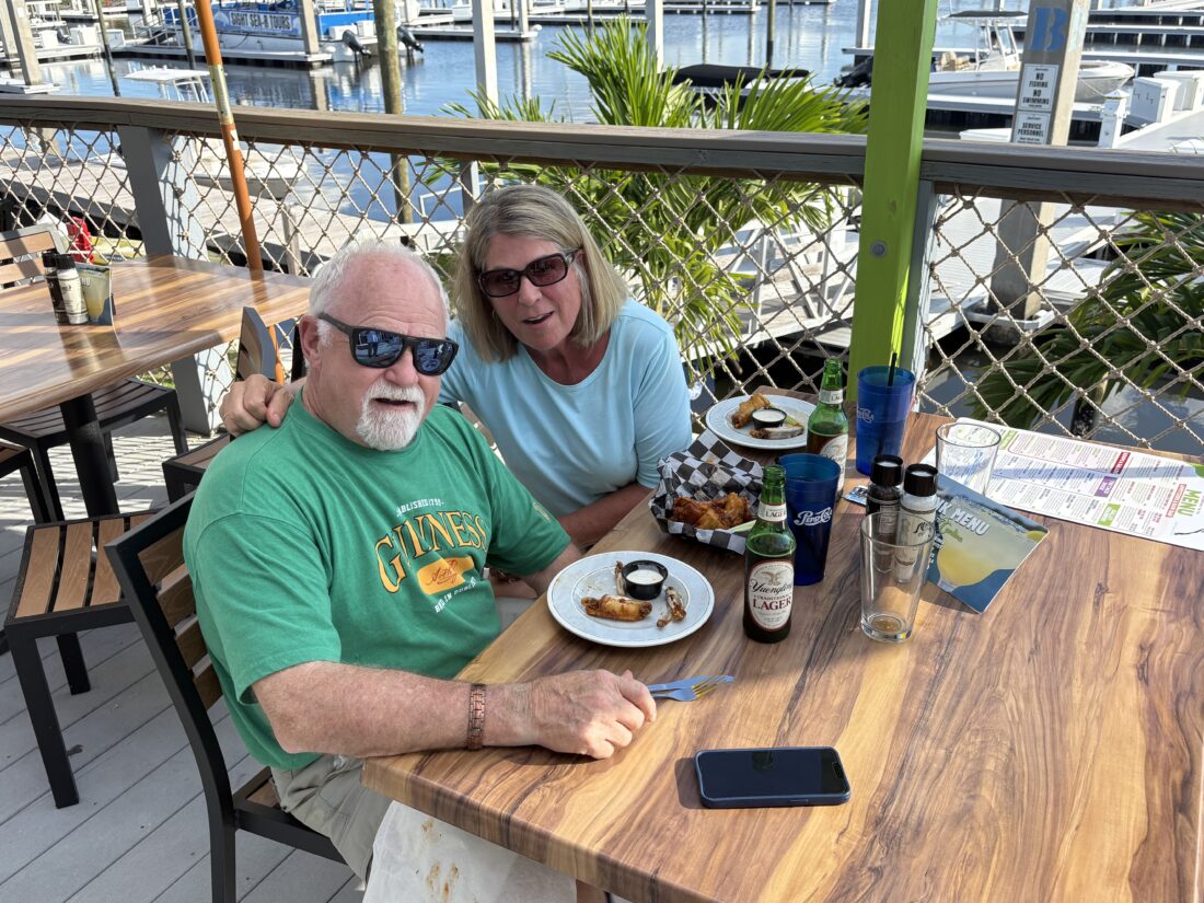 David and Kelly Massey stopped by to eat on their boat. Originally from Michigan, they live full-time down the road in Iona now.
