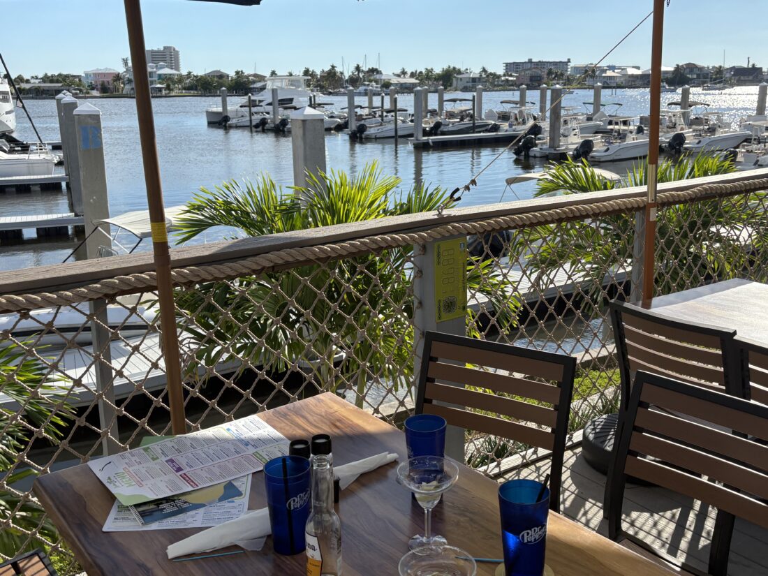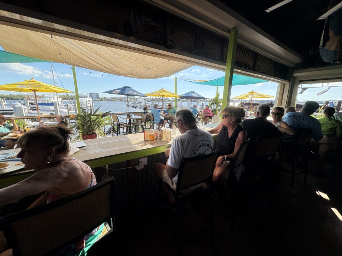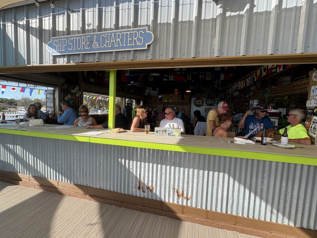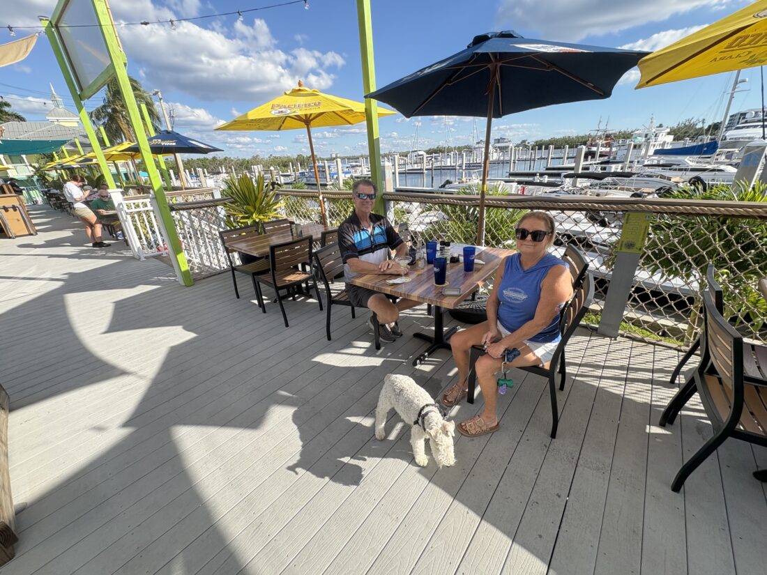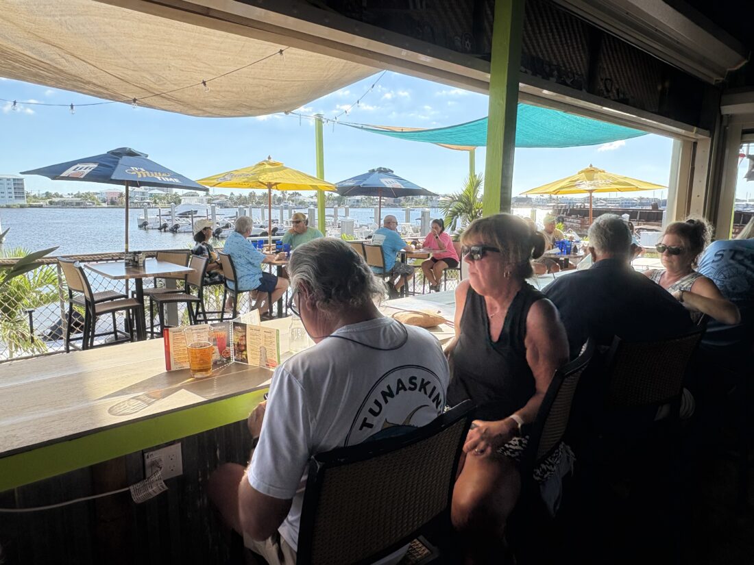 David and Kelly Massey stopped by to eat on their boat. Originally from Michigan, they live full-time down the road in Iona now.