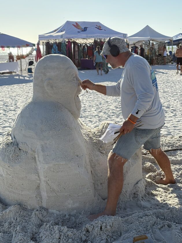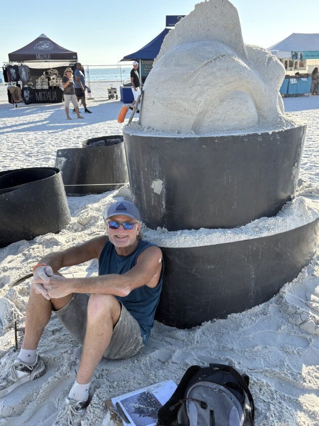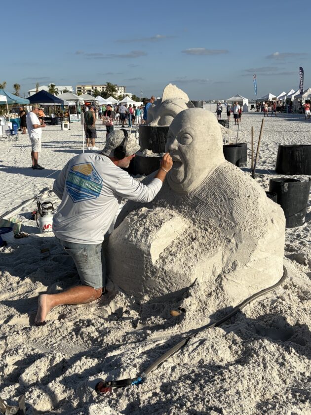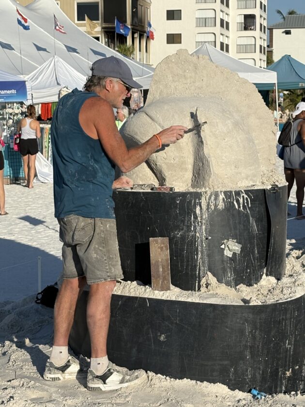 John Gowdy, of Atlantic City, works on his sculpture at the American Sand Sculpture Championship at the DiamondHead Beach Resort on Fort Myers Beach. Photo by Nathan Mayberg
