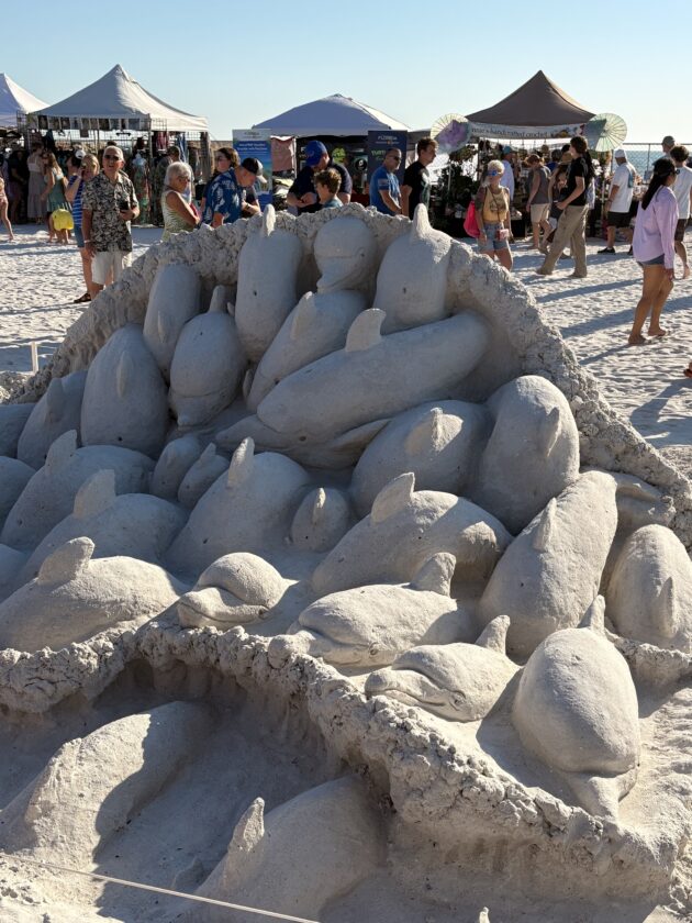This sculpture of bottlenose dolphins by Paul Hoggard was a favorite of many attendees at the American Sand Sculpture Championship on Fort Myers Beach. Photo by Nathan Mayberg