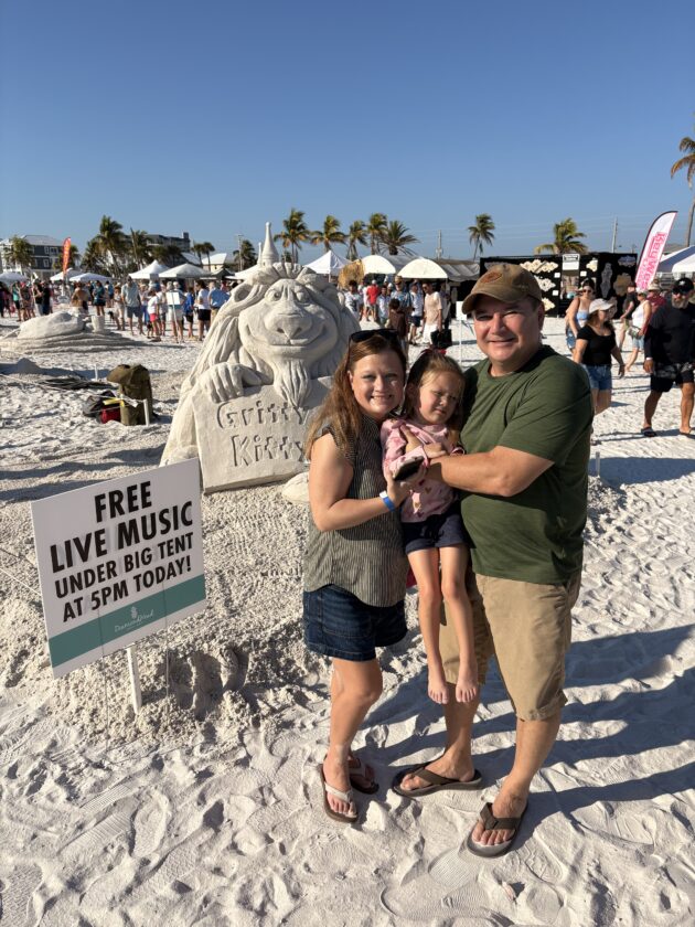 Haley and Ray Wilf, of Fort Myers, brought their daughter Everly to the DiamondHead Beach Resort for the American Sand Sculpting Championship. Photo by Nathan Mayberg