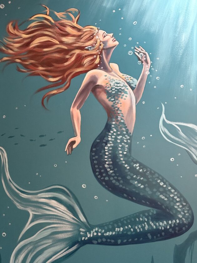 Impressive murals from Ashley Randolph of the Art Box Collective adorn the floors and the walls from along the stairs and into the bathrooms. The Millers credited Randolph with numerous ideas for the look of the inside.