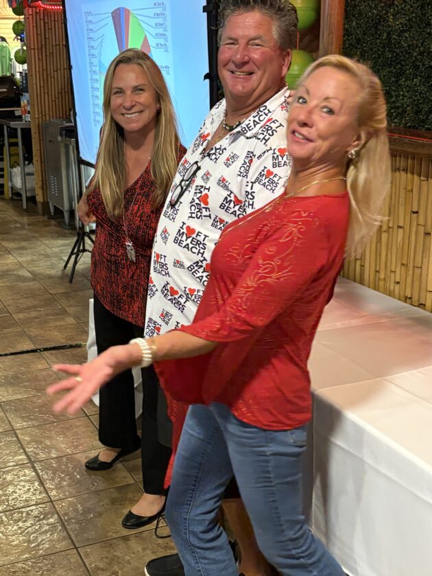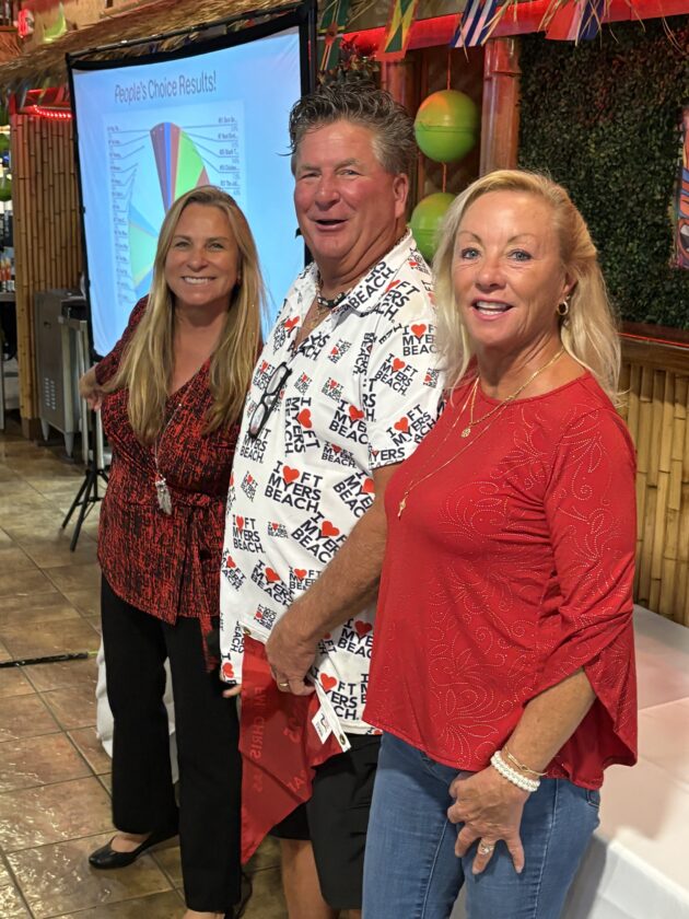 The Davidsons are still working on the rebuild of their home, which still has an iconic “I love (in the shape of a heart) Fort Myers Beach” sign on it. The Davidsons have even made their own stickers with the phrase that they passed around at the awards ceremony at Marina Cantina Waterfront Tin Tiki at Salty Sam’s Marina, where the parade took off a week earlier.