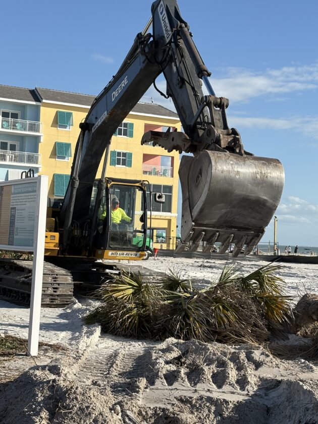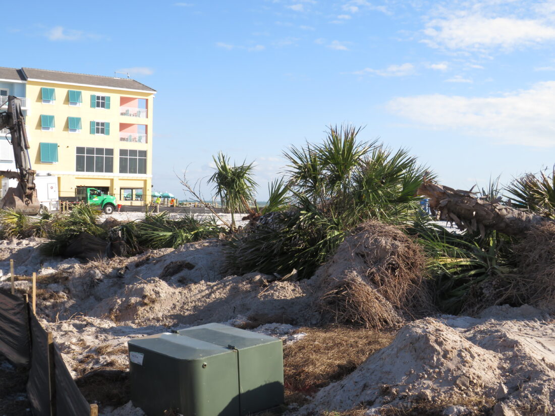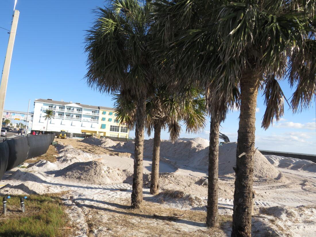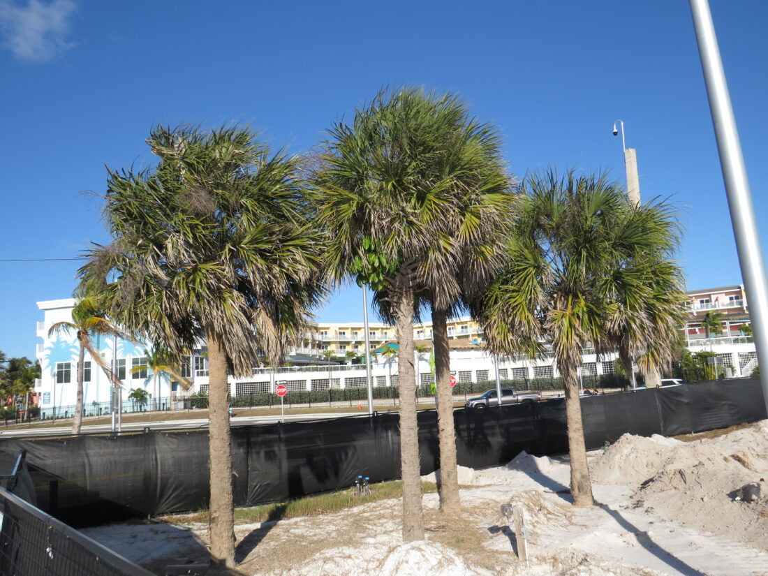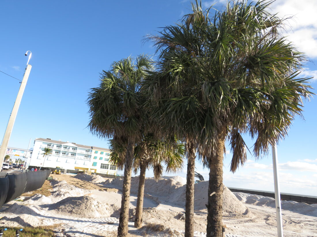 In response to questions from the Fort Myers Beach Observer regarding the displacement of the trees last week, Lee County spokesperson Tim Engstrom initially said the cabbage palms taken down would be moved and then re-used throughout the site.
