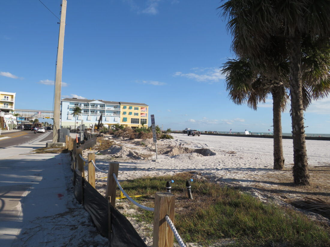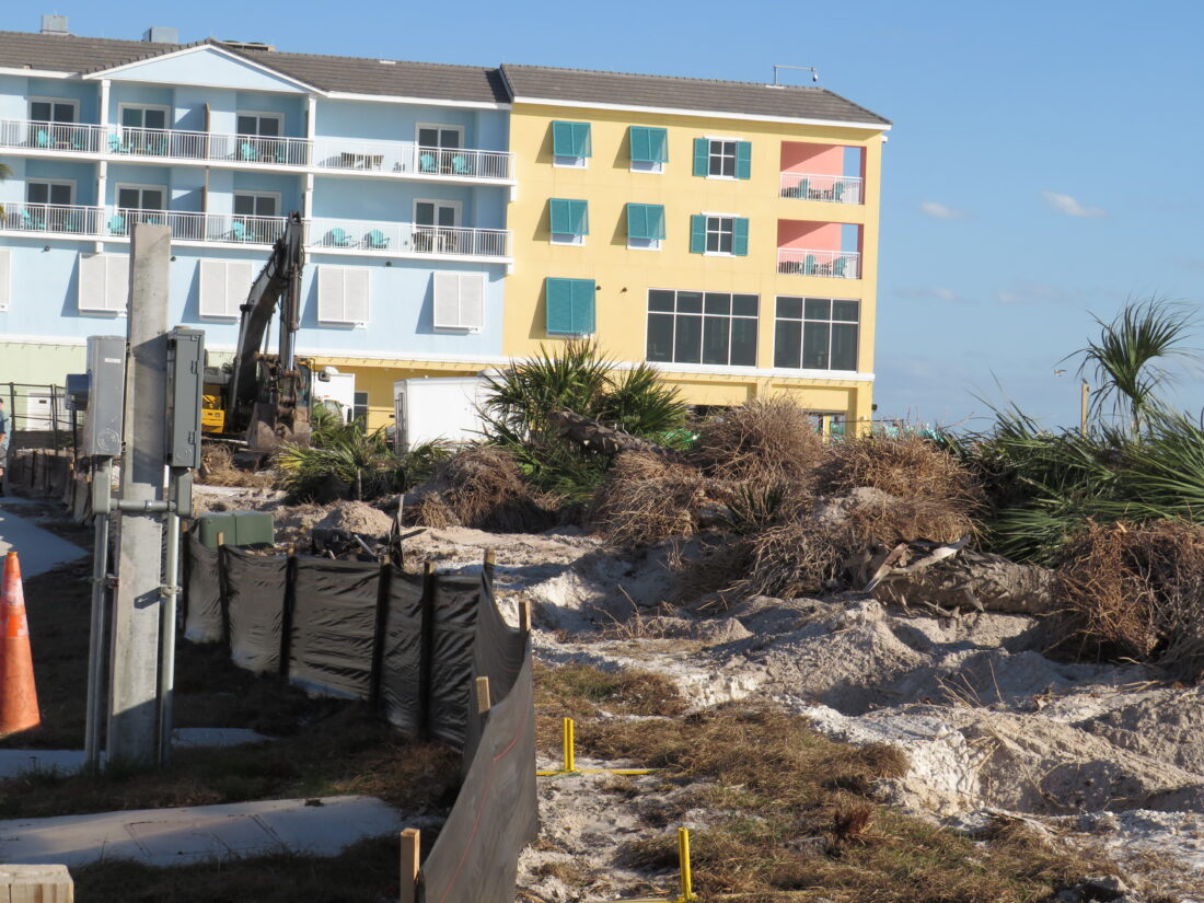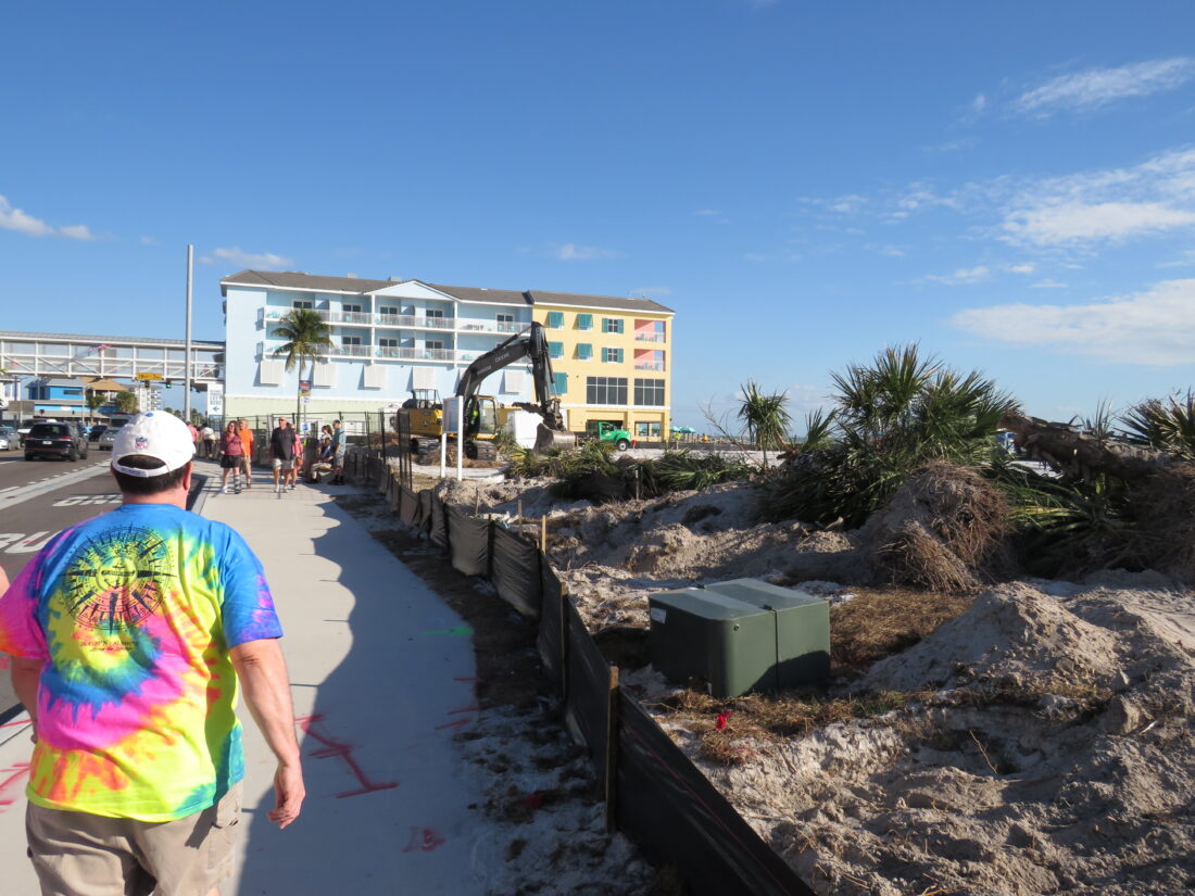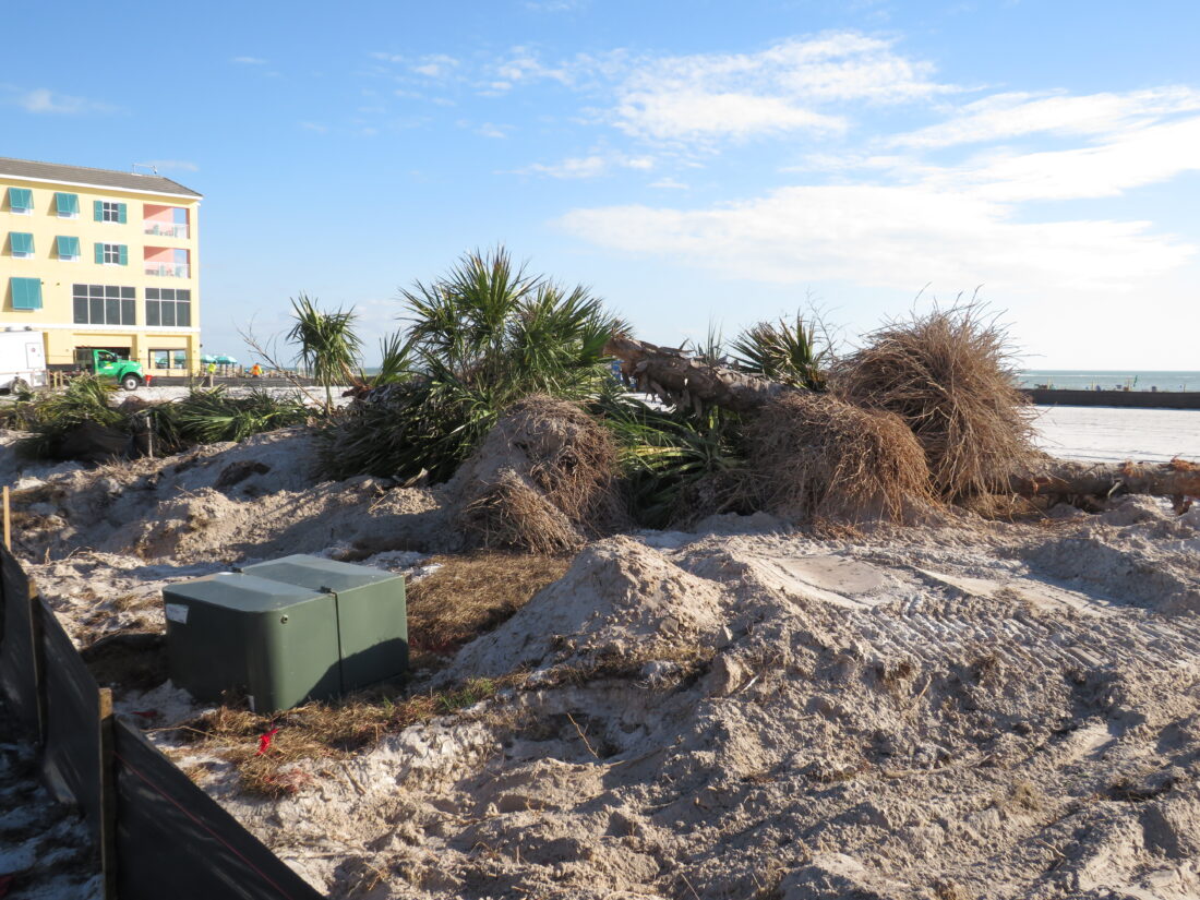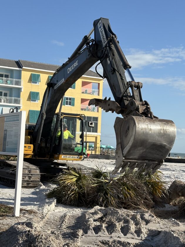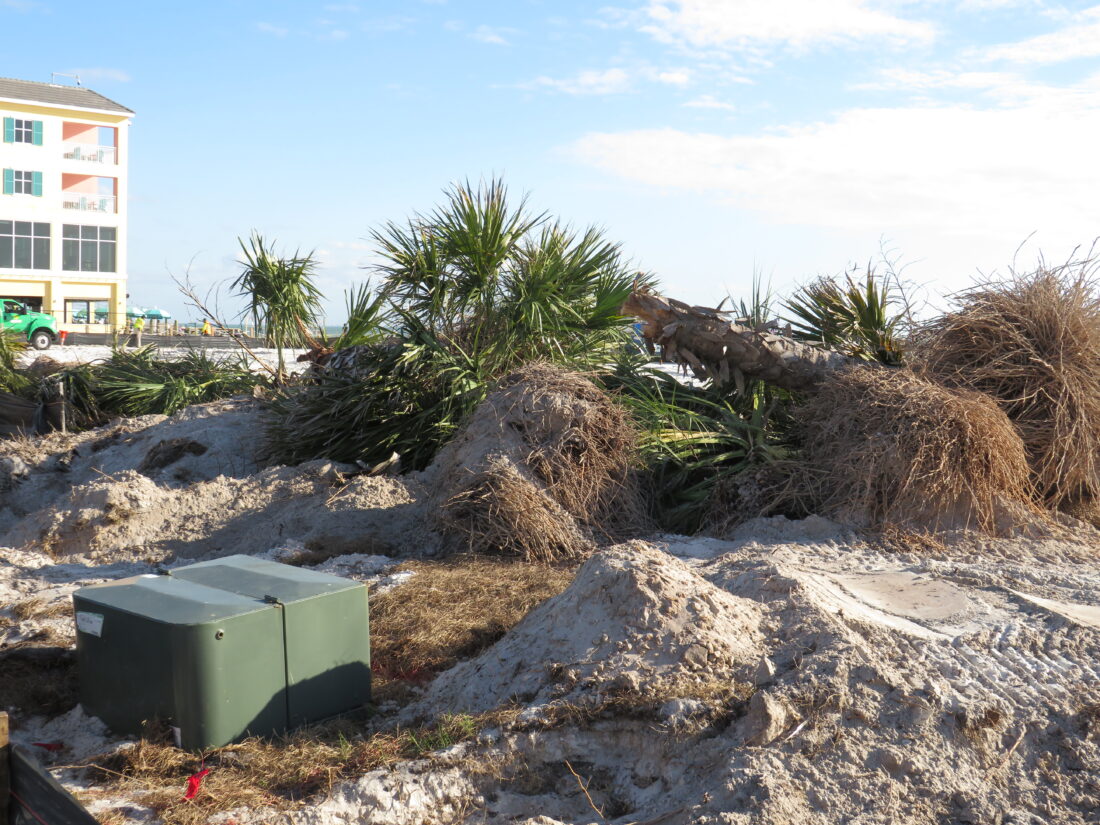 In response to questions from the Fort Myers Beach Observer regarding the displacement of the trees last week, Lee County spokesperson Tim Engstrom initially said the cabbage palms taken down would be moved and then re-used throughout the site.