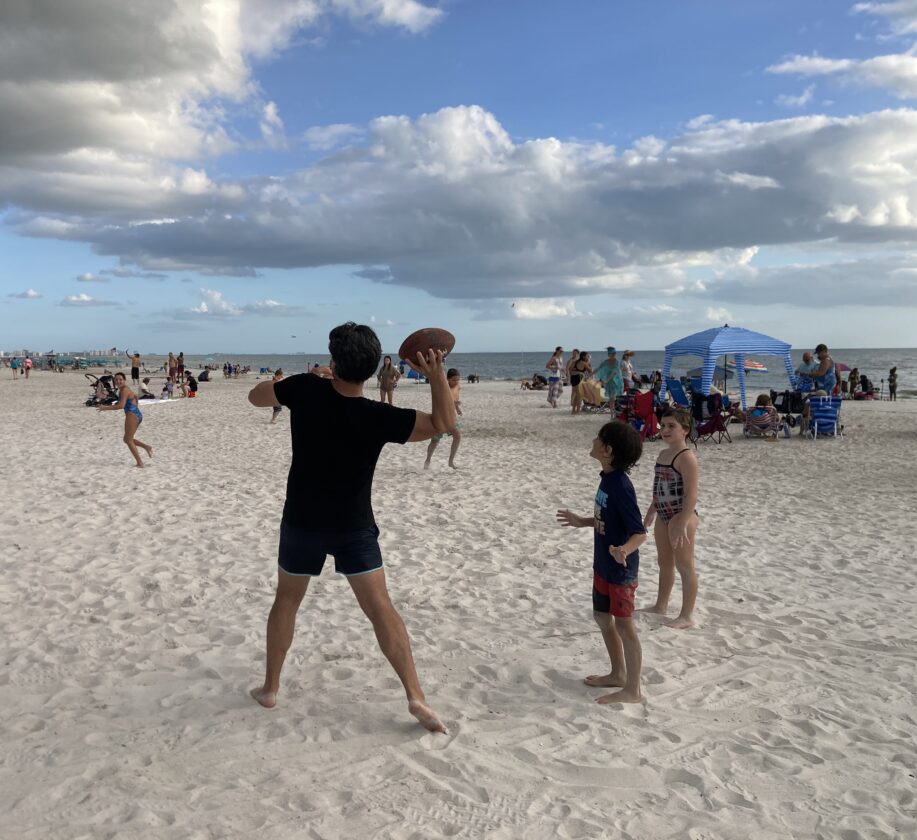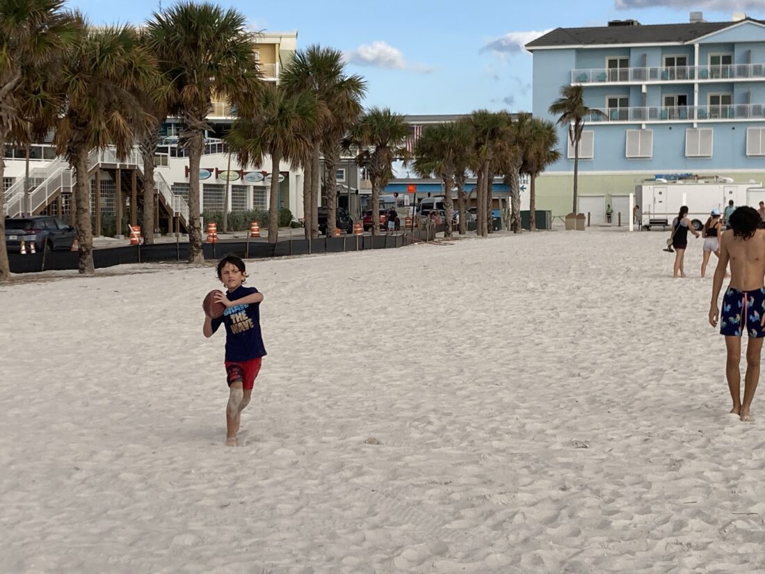 A boy plays catch with a football at Crescent Beach Family Park before majority of the trees fronting the park were taken down as part of plans to reconfigure the county park on Fort Myers Beach. File photo