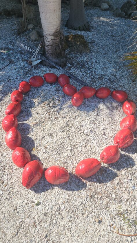 “We still decorate with all the fallen coconuts,” Jones said. “This heart is for Happy Valentines day!”