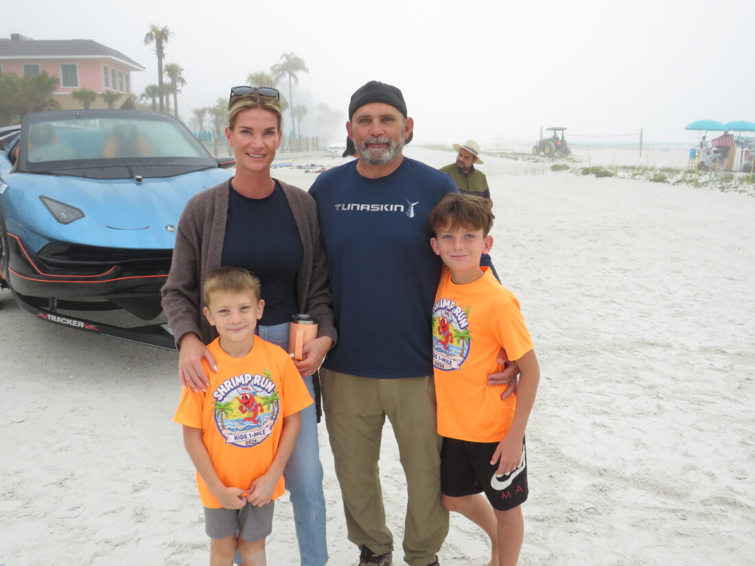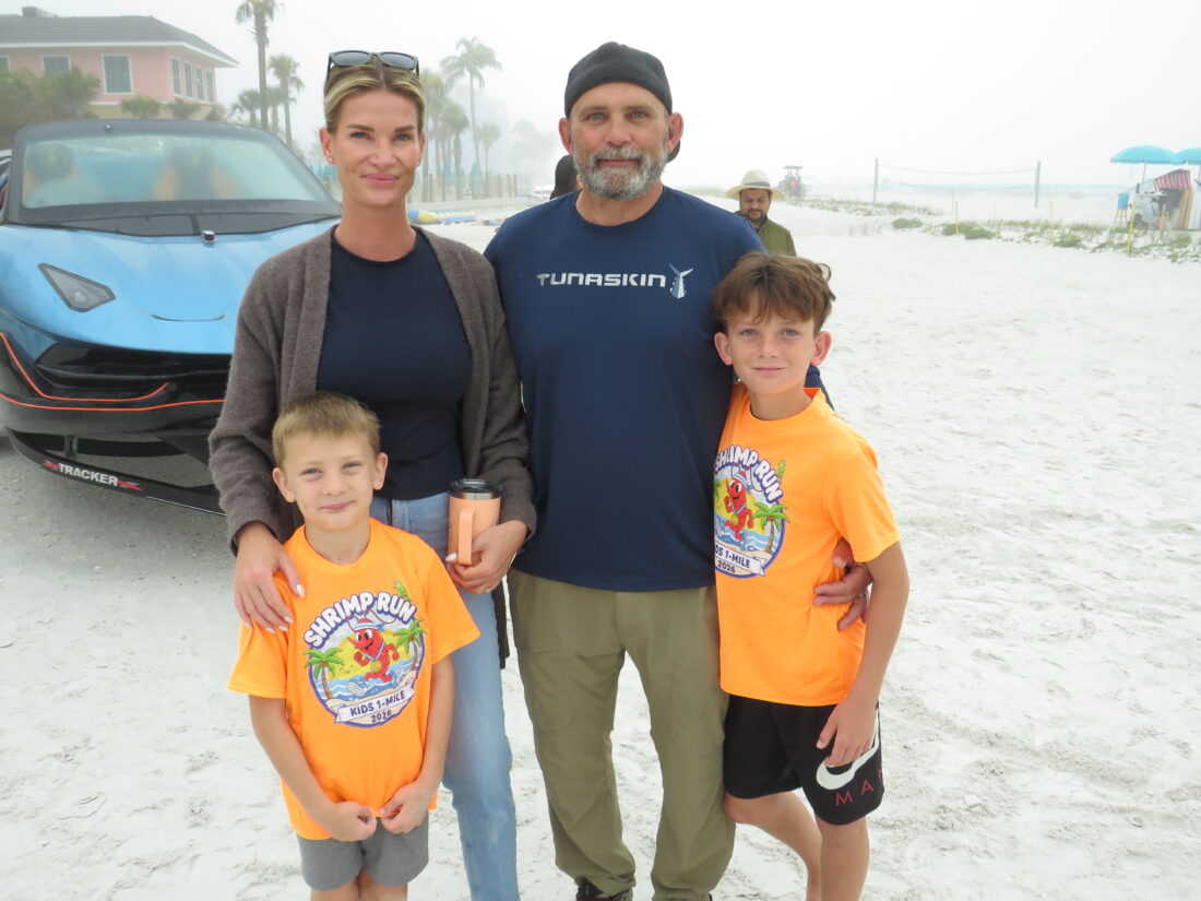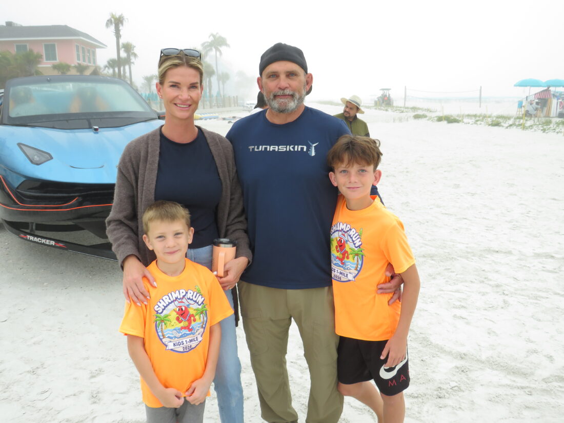 Bettina Koss and John Koss with children Carter (left) and JC (right). JC won the Kids Shrimp Run on Saturday over a foggy Fort Myers Beach. Photo by Nathan Mayberg
