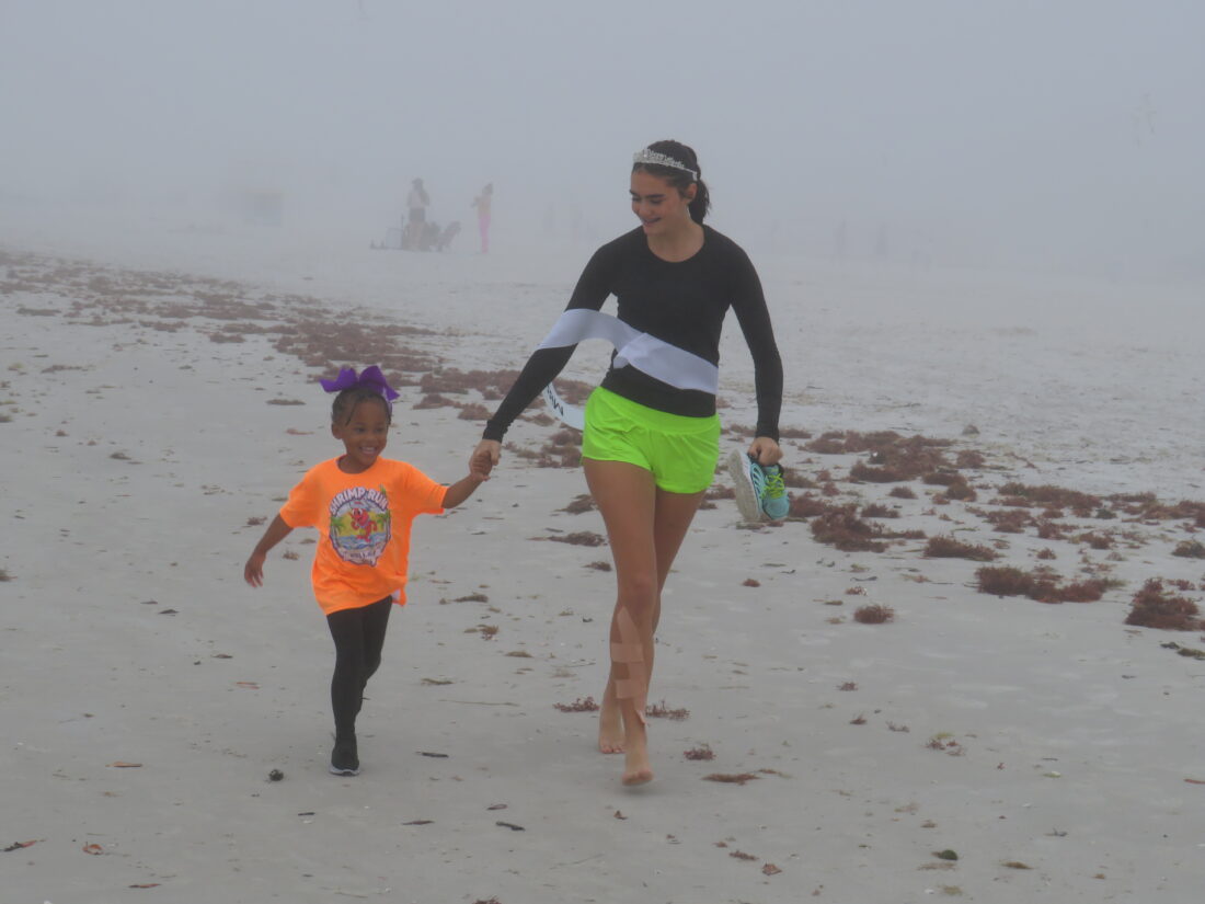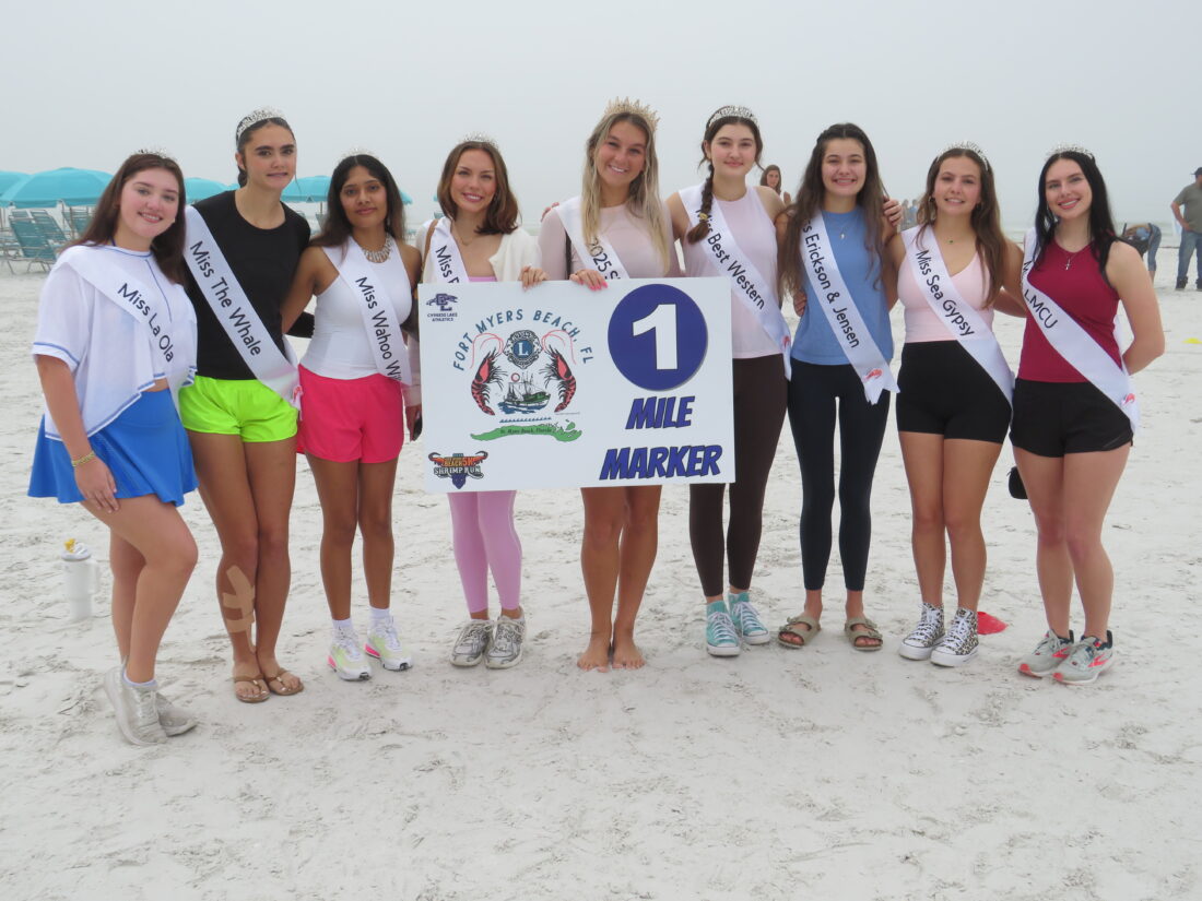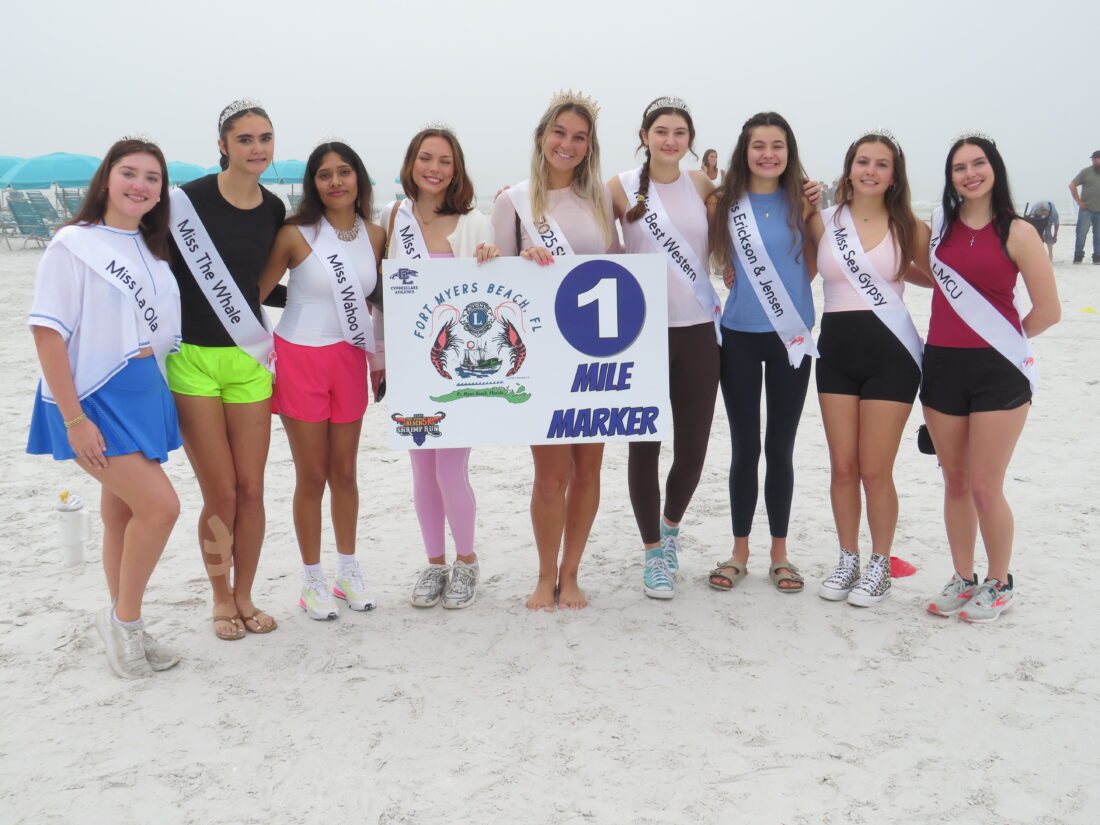 The Fort Myers Beach Shrimp Festival princesses helped assist in the event, and ran along with some of the younger runners to help them finish the race.