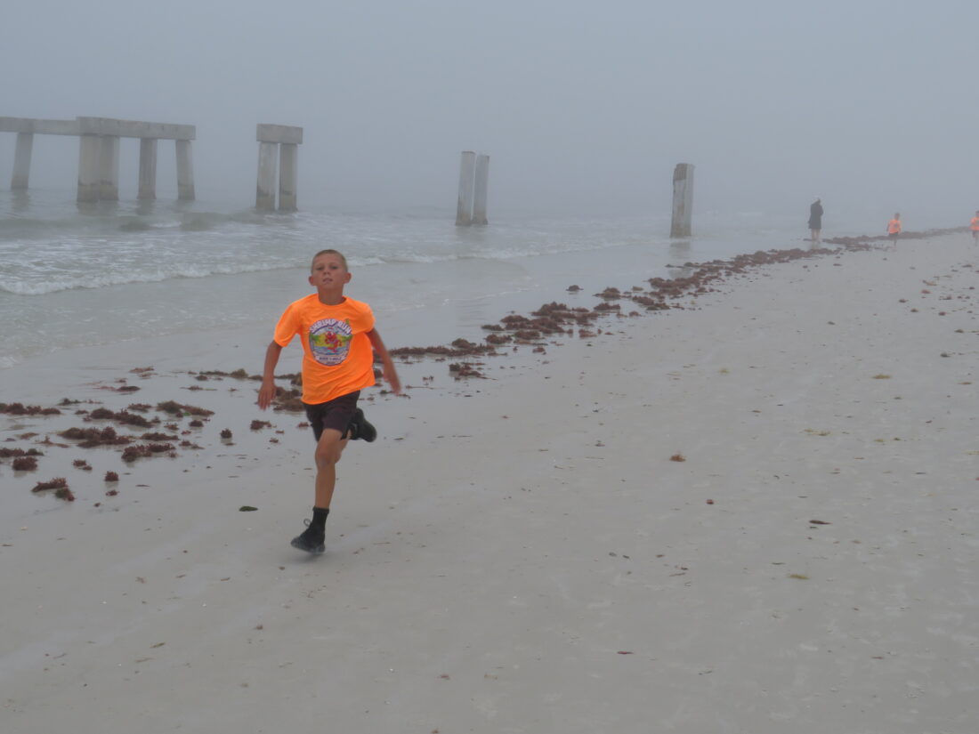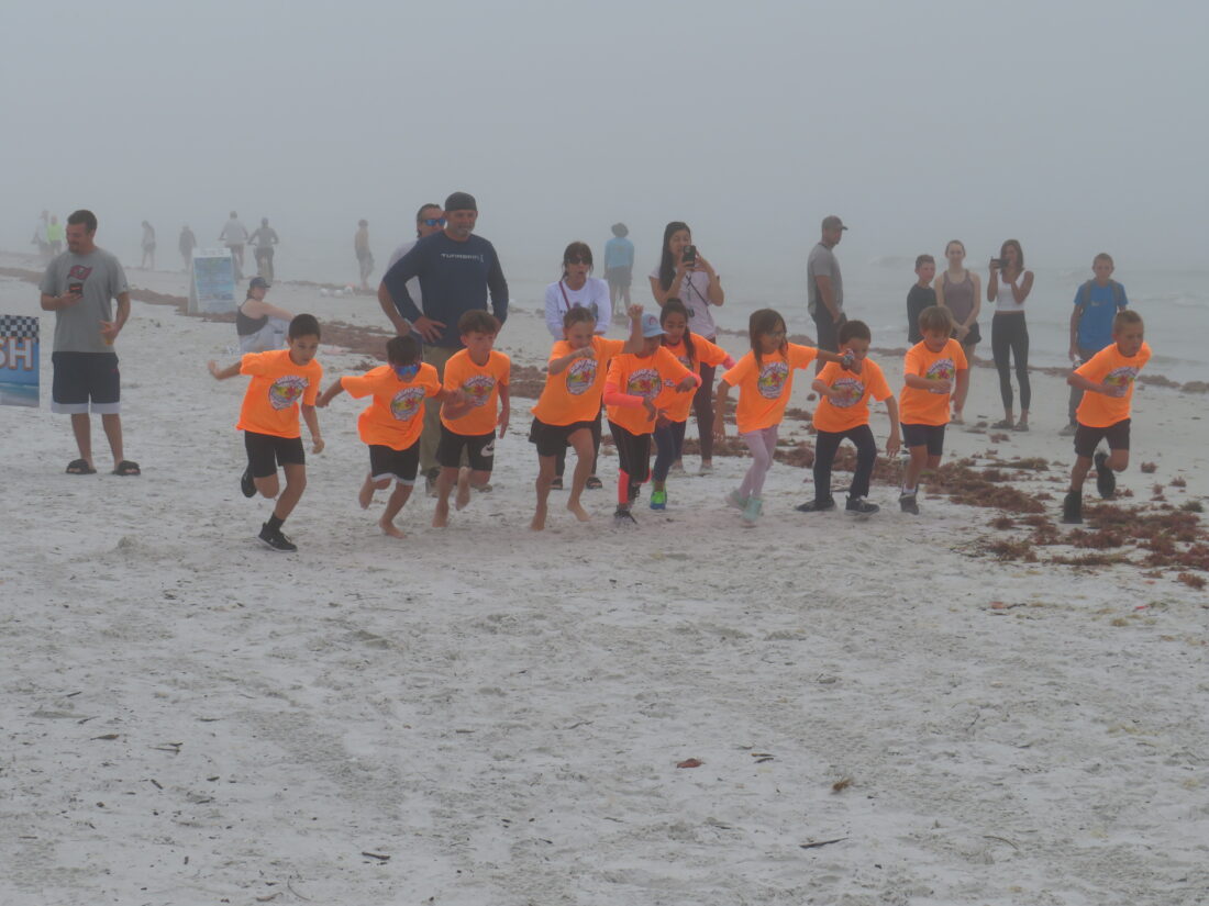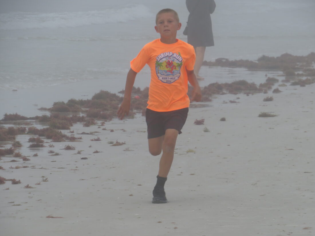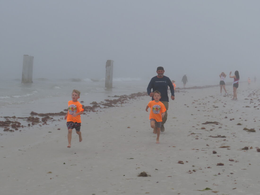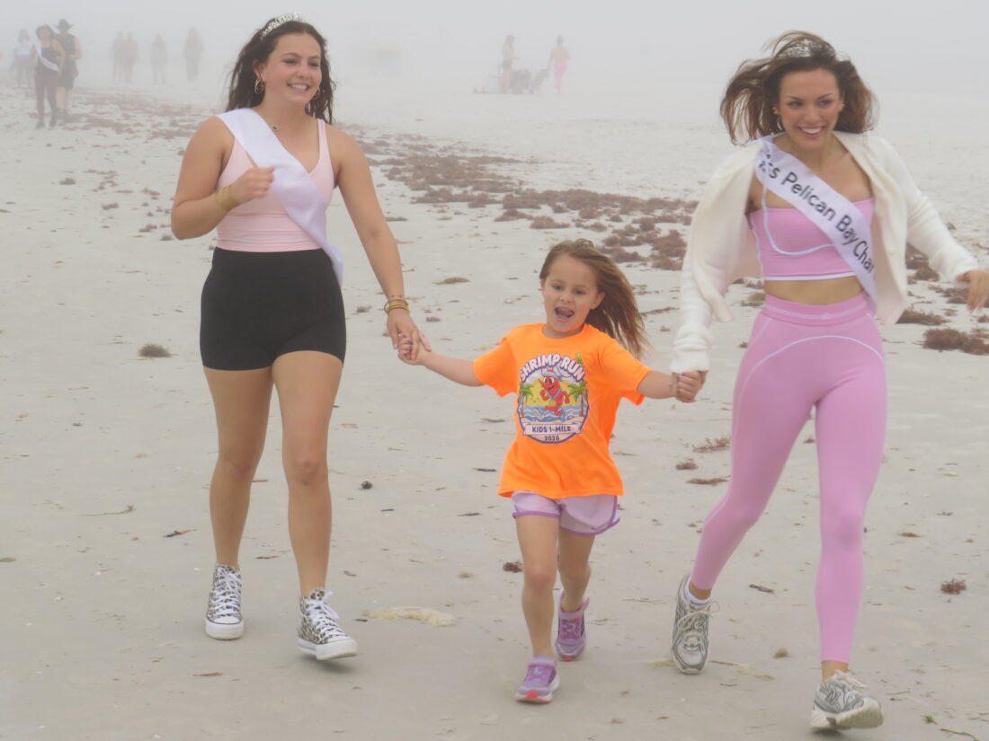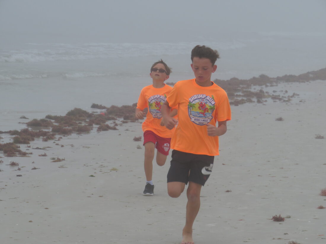 The Fort Myers Beach Lions Club Shrimp Festival Kids Shrimp Run brought out a competitive group of youngsters on Saturday to race across the beach sand through the fog near Crescent Beach Family Park and the Margaritaville Beach Resort.