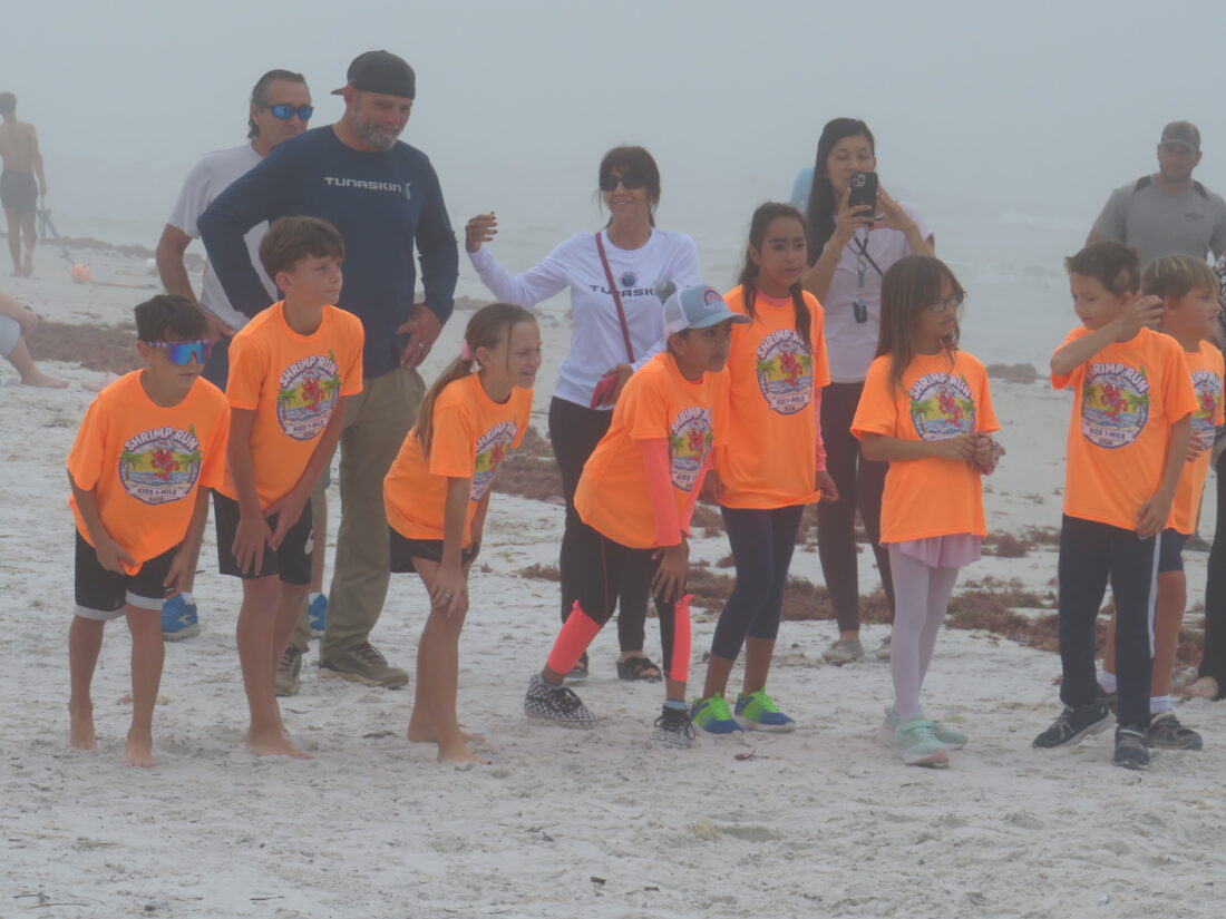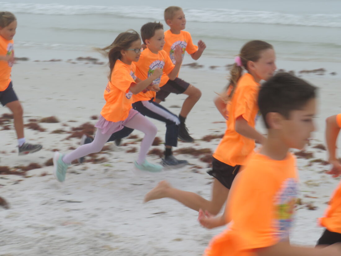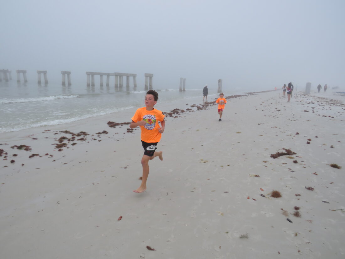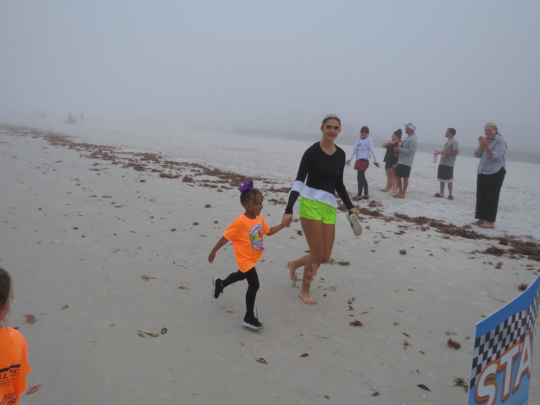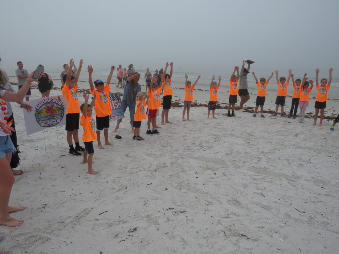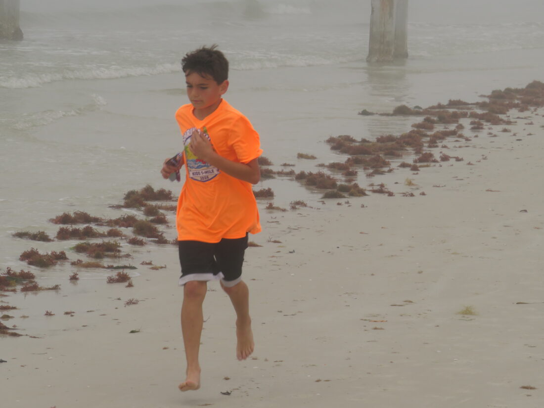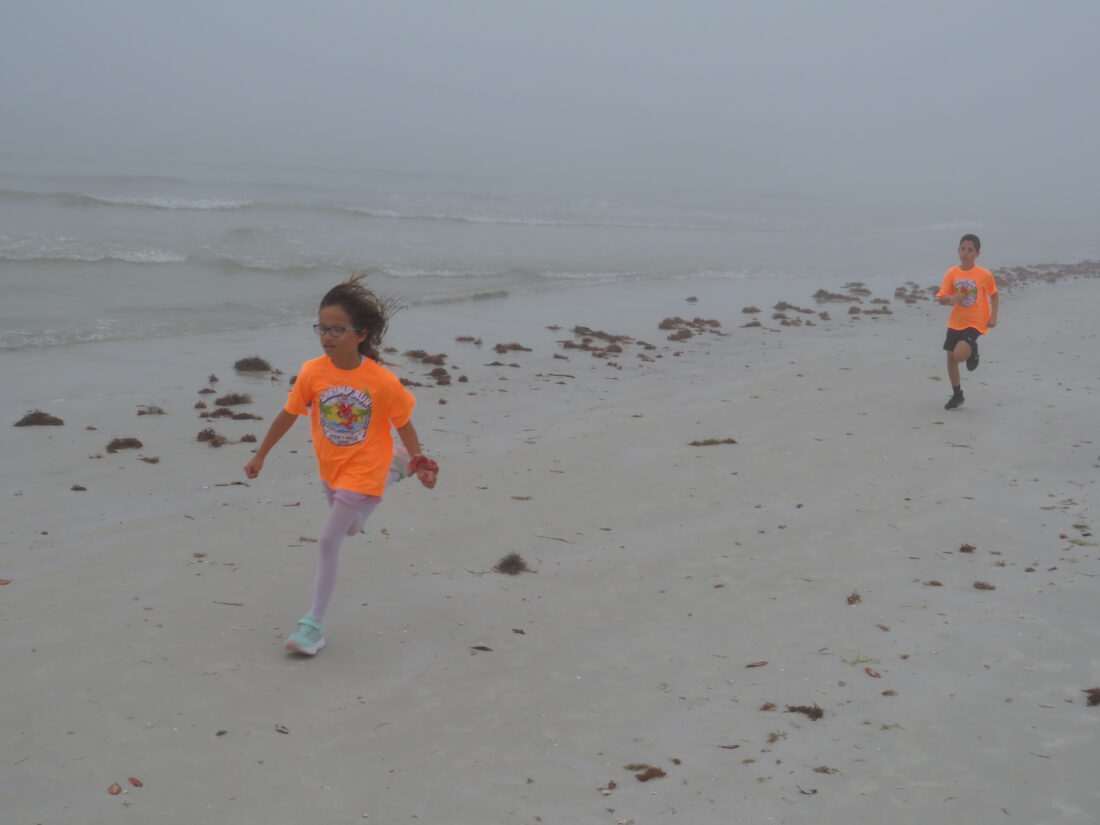 The Fort Myers Beach Lions Club Shrimp Festival Kids Shrimp Run brought out a competitive group of youngsters on Saturday to race across the beach sand through the fog near Crescent Beach Family Park and the Margaritaville Beach Resort.