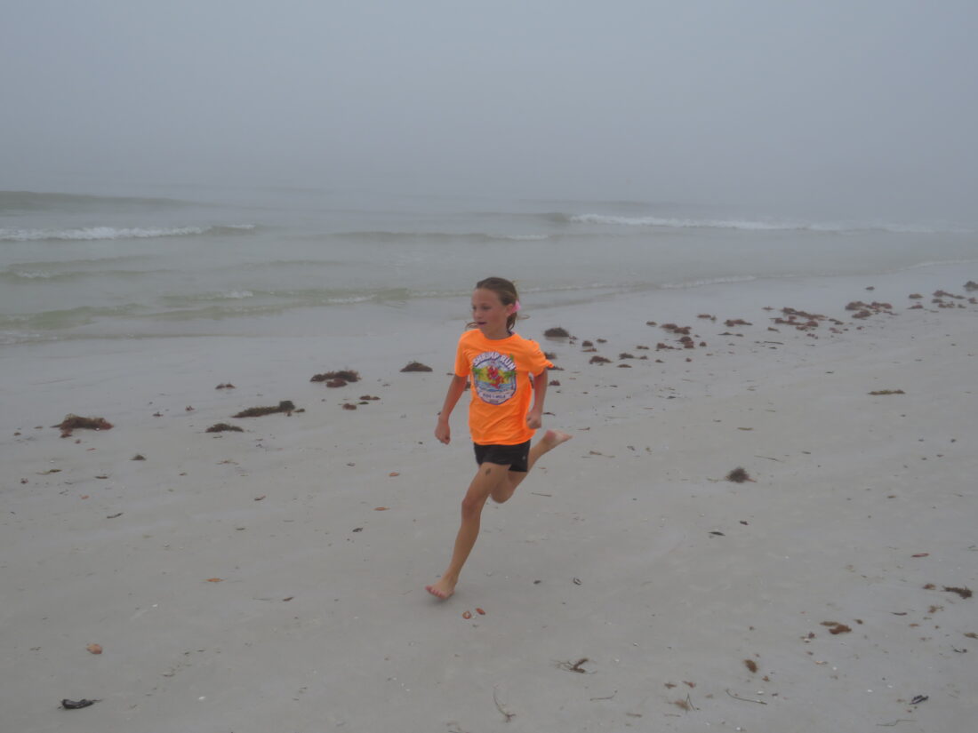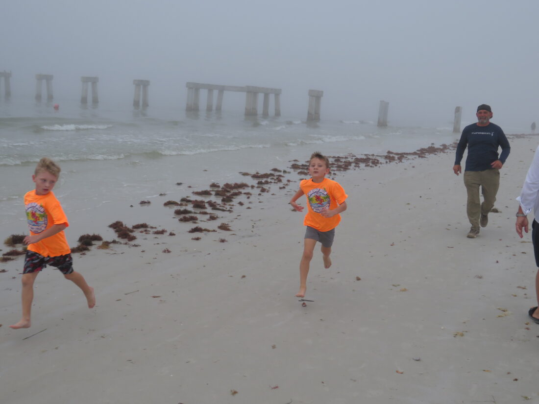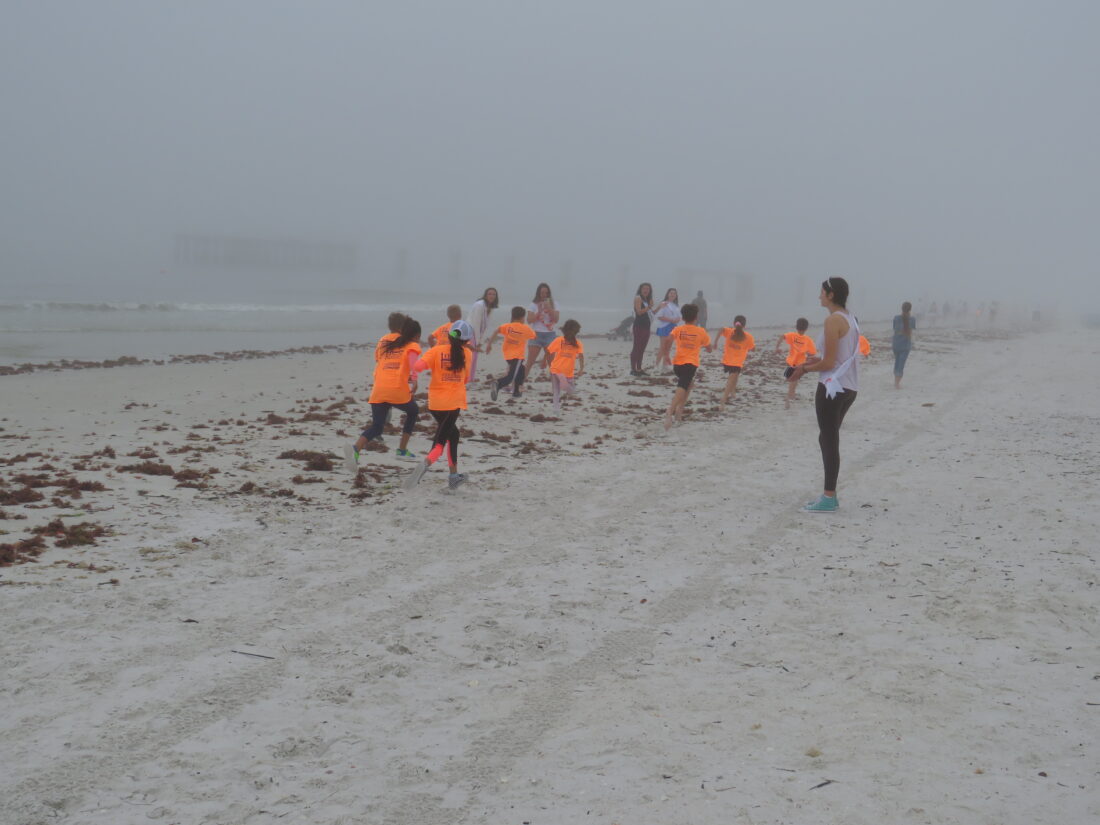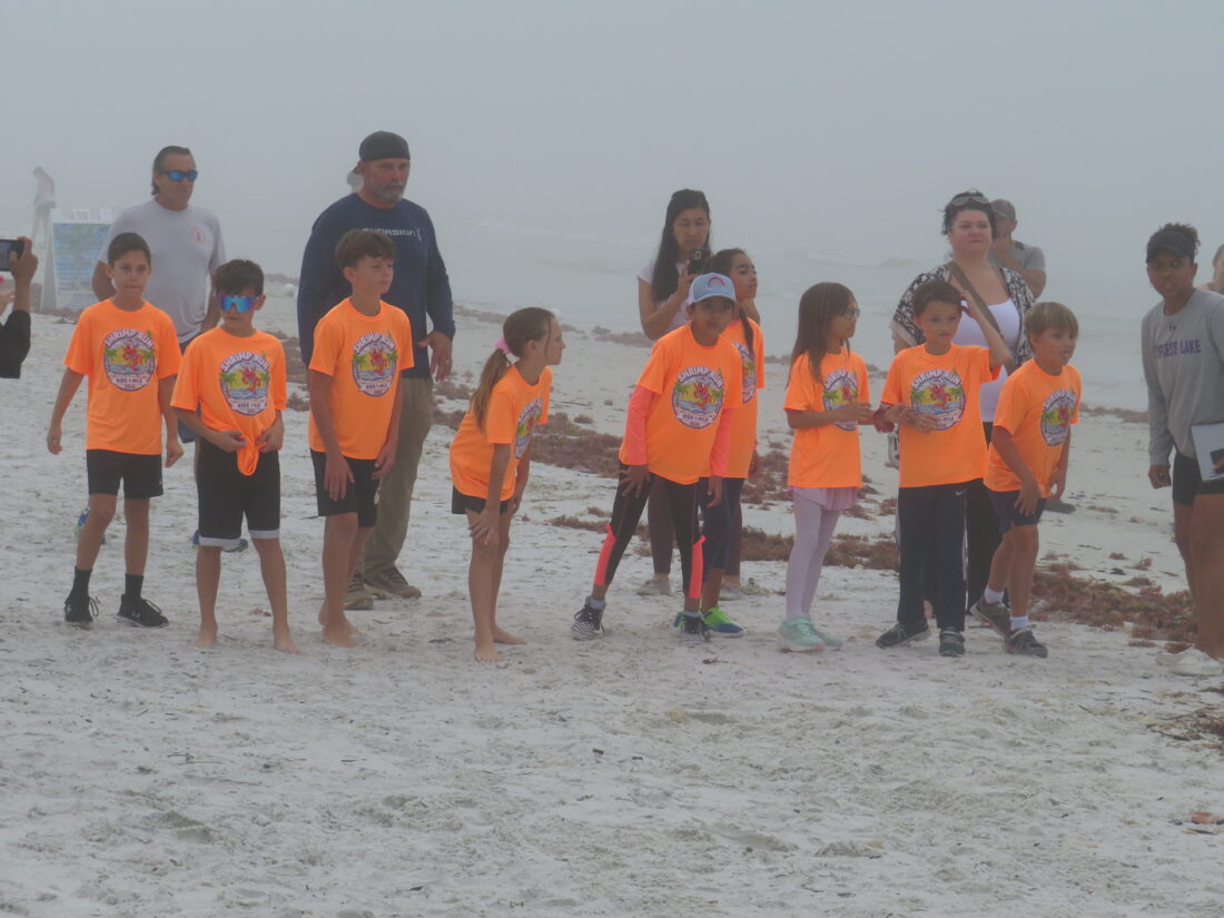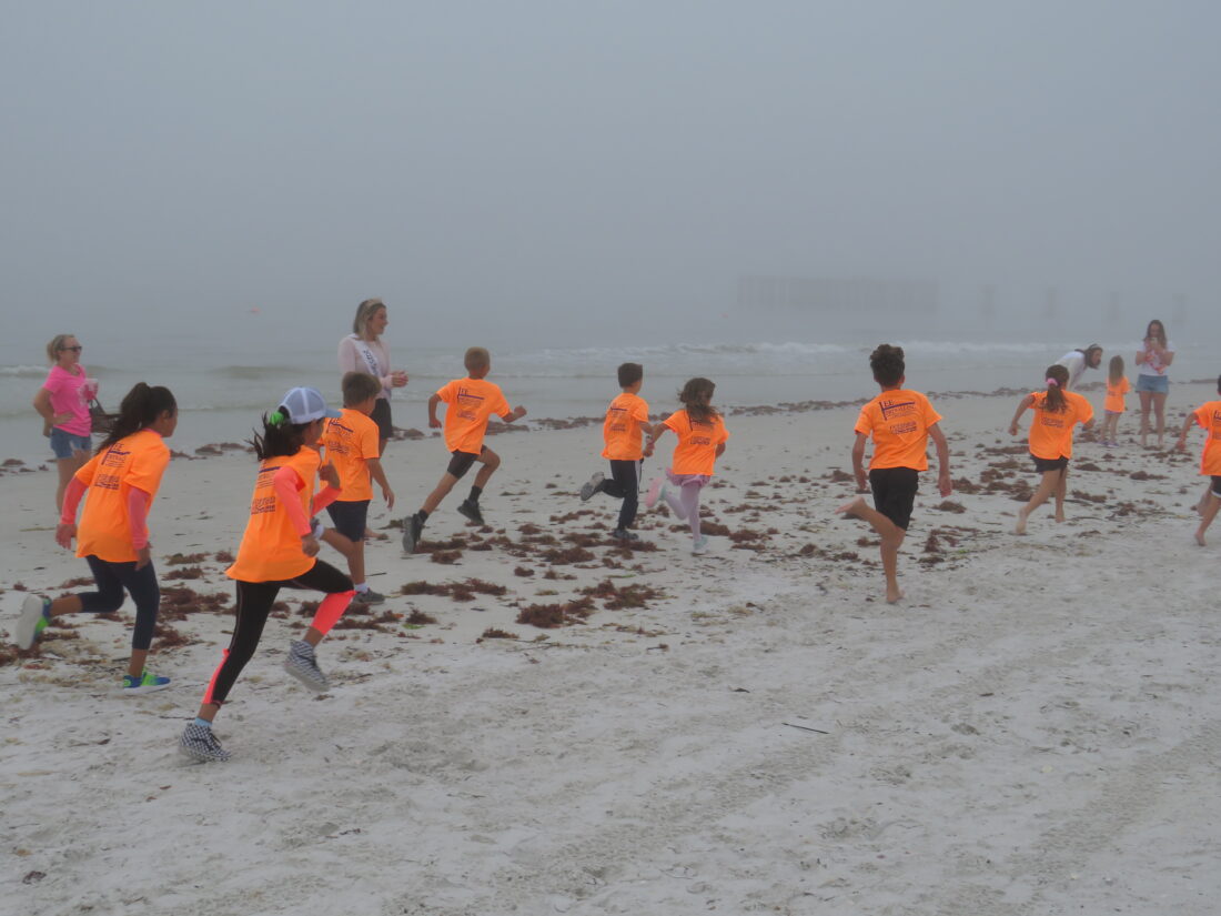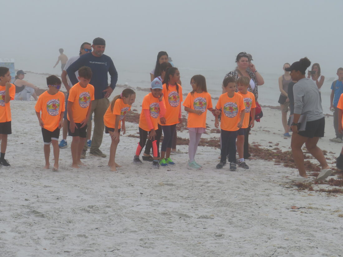 The Fort Myers Beach Lions Club Shrimp Festival Kids Shrimp Run brought out a competitive group of youngsters on Saturday to race across the beach sand through the fog near Crescent Beach Family Park and the Margaritaville Beach Resort.