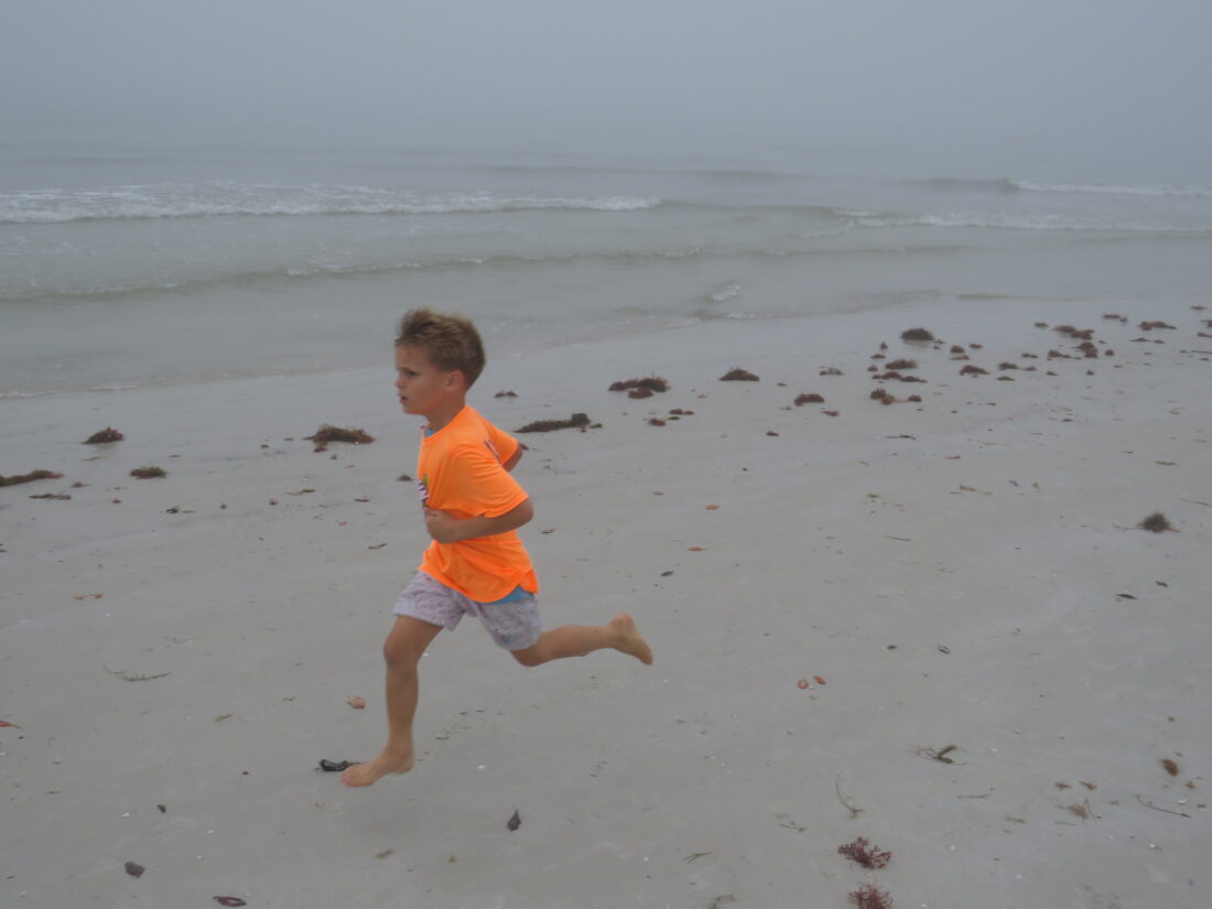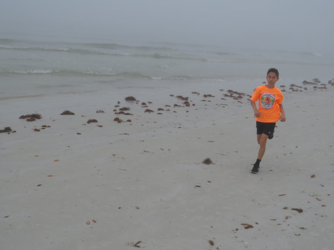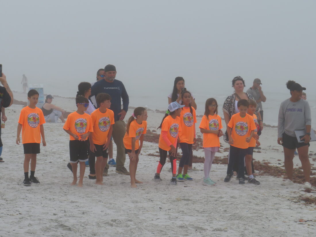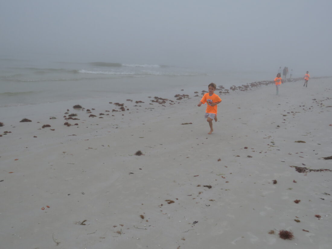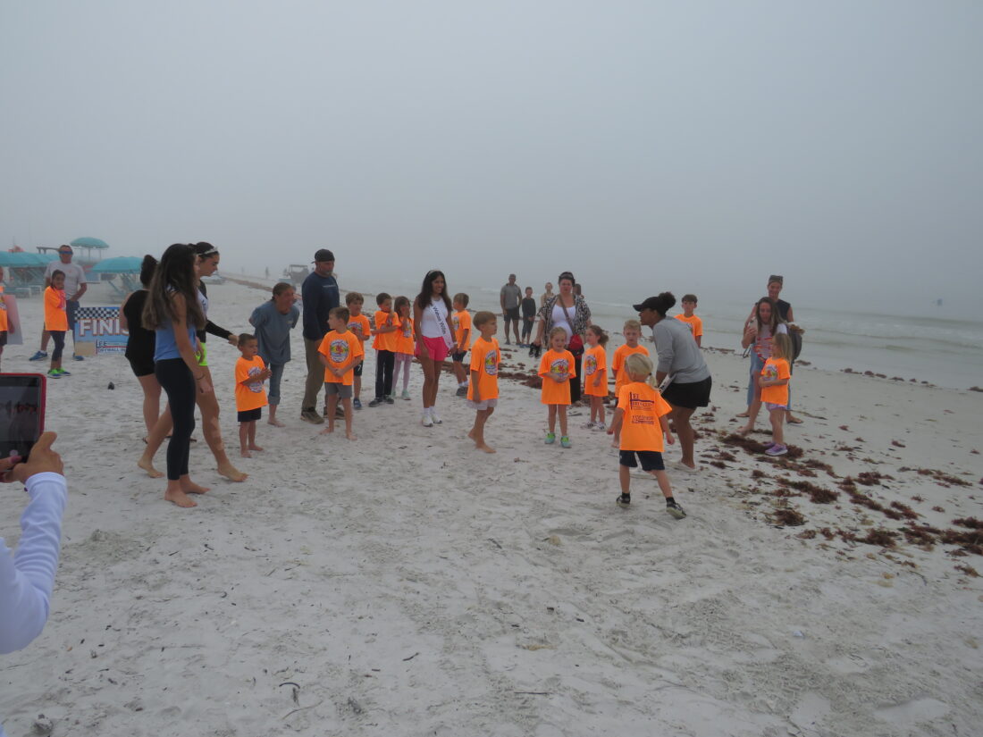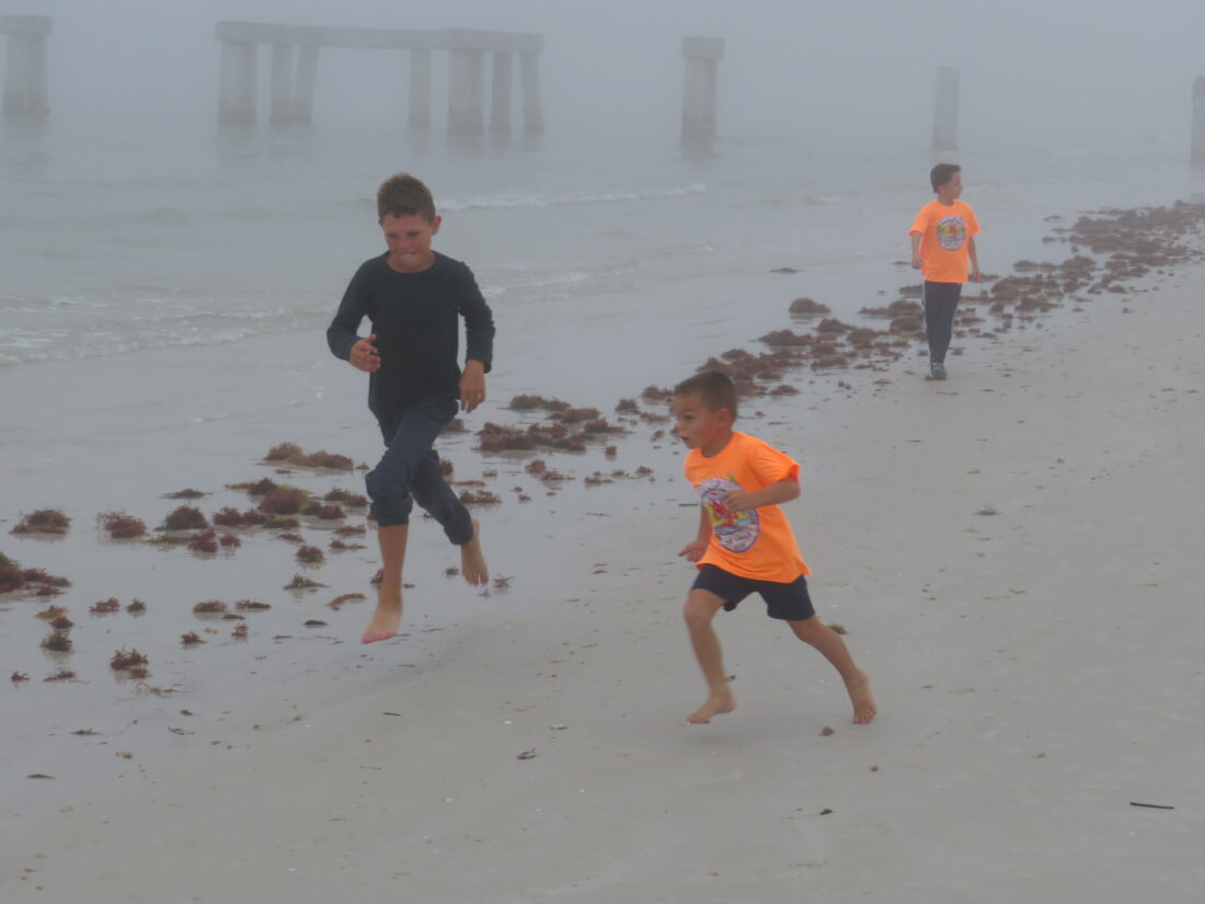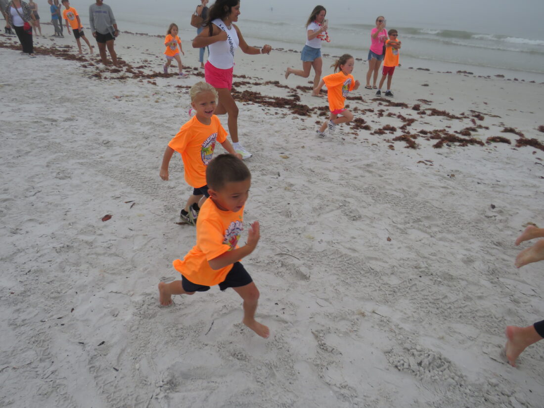 The Fort Myers Beach Lions Club Shrimp Festival Kids Shrimp Run brought out a competitive group of youngsters on Saturday to race across the beach sand through the fog near Crescent Beach Family Park and the Margaritaville Beach Resort.