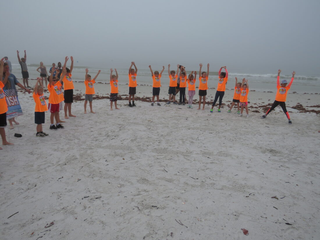 Runners stretch before the Kids Shrimp Run on Fort Myers Beach. Photo by Nathan Mayberg