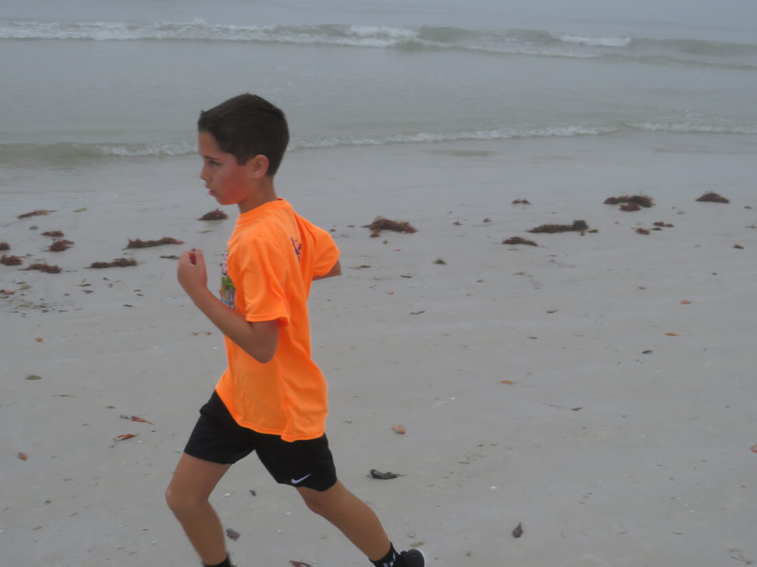 JC Koss, 11, captured the Fort Myers Beach Shrimp Festival Kids Shrimp Run racing barefoot across the beach near Margaritaville Beach Resort and Crescent Beach Family Park on Fort Myers Beach Saturday. Photo by Nathan Mayberg