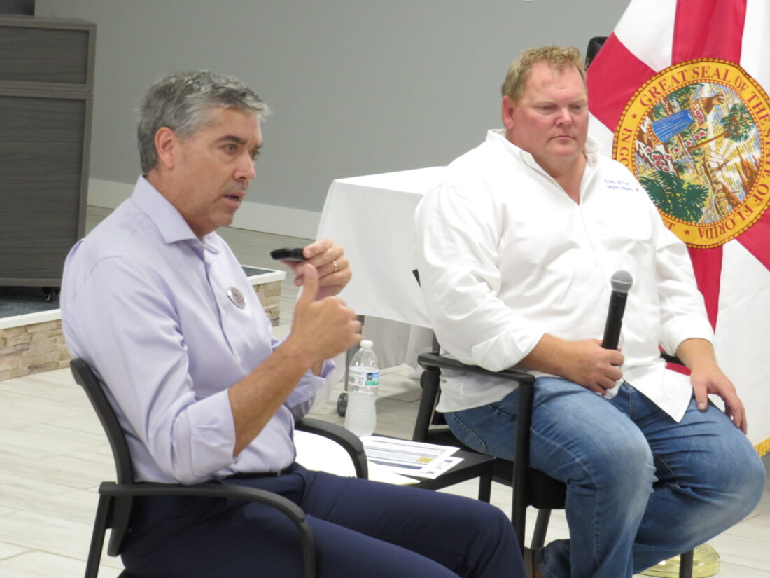 Town of Fort Myers Beach Manager Will McKannay and Mayor Dan Allers sat down for a question and answer session with the public that was attended by all of the town’s councilmembers in a standing room-only setting where community members sought questions on a range of issues.