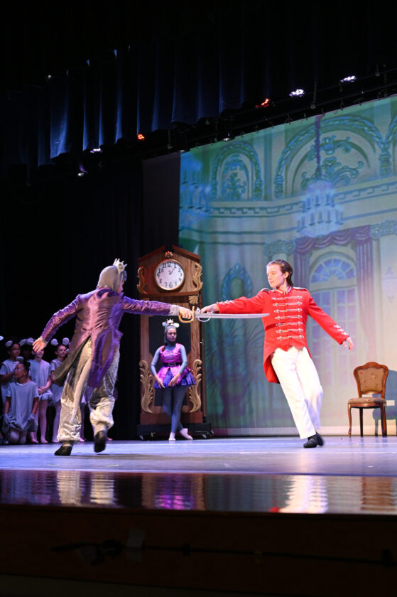 In a fierce battle, the Nutcracker, Calvin Collins, bravely defeats the Mouse King, Kasen Kruszczynski. For the 23rd year, North Fort Myers Academy for the Arts will stage the Tchaikovsky's beloved ballet, The Nutcracker, to kick off the holiday season.