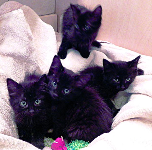 These little kittens are just around 10 weeks old. They are adorable, long-haired, handsome young black cats with blue eyes. Take one or two or all, and they will make you laugh for hours. It’s the best natural therapy around! Please call their foster mom, Suzy, at 896-8732. Suzy has been helping us in catching mothers and kittens, and having them fixed, vaccinated and adopted.