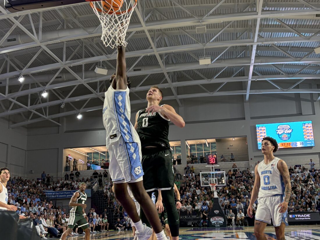 North Carolina featured the heralded freshman Caleb Wilson, whom Michigan State senior center Carson Cooper described as a likely NBA Lottery pick. Wilson made some flashy dunks early in the game but Michigan State was able to contain him as the game wore on, keeping him further off the basket.