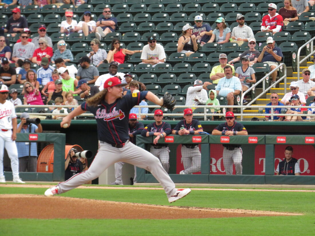 While the Braves didn’t send over any starters from their batting lineup on Sunday, they did send out a tough right-hander in their starter Grant Holmes. Holmes threw two and two-thirds scoreless innings against the Twins. While not as electric as Abel, he mixed in a hard-biting 93 mph fastball with a sharp 90 mph cutter, an 82 mph curve, along with a mid-80’s slider and changeup to keep the Twins off balance.