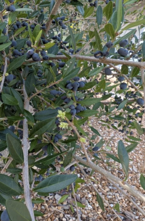 Florida privet is dioecious meaning it needs both male and female plants for successful pollination and fruit production. It blooms early in the spring and its tiny greenish yellow flowers are a magnet to bees and butterflies. Fruits ripen by late spring to early summer making it one of the earliest producing fruits for birds to enjoy before other fleshy fruits ripen. The fruit varies in color from purple to black and looks like a small olive. It feeds a variety of songbirds and wildlife and its thick foliage provides them shelter.