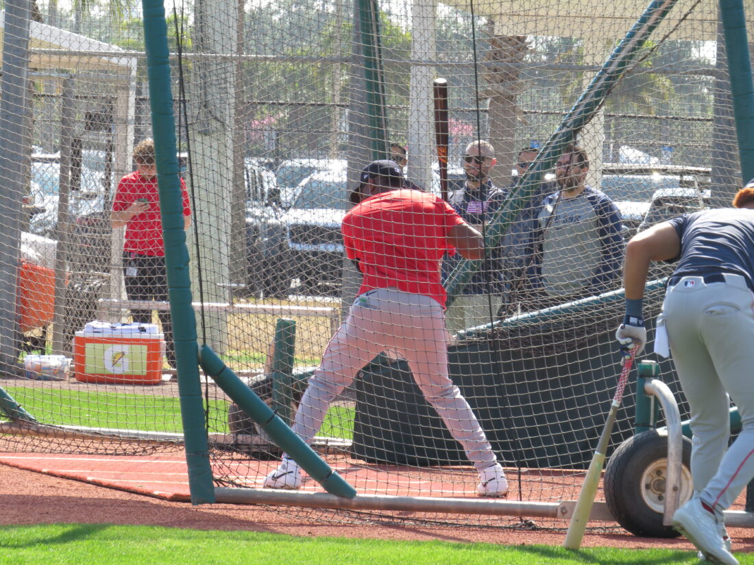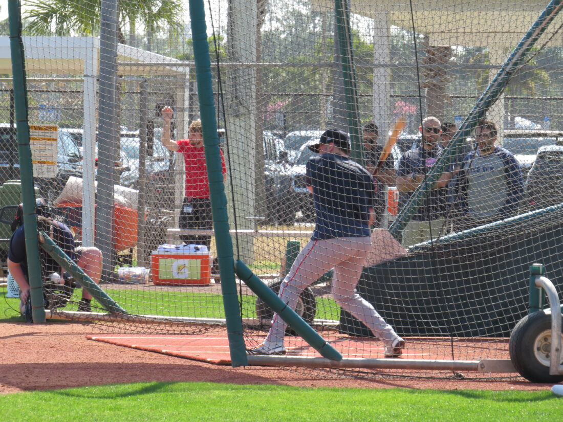 Boston Red Sox shortstop Trevor Story signs autographs for fans after batting practice during spring training at JetBlue Park in Fort Myers. Photo by Nathan Mayberg
