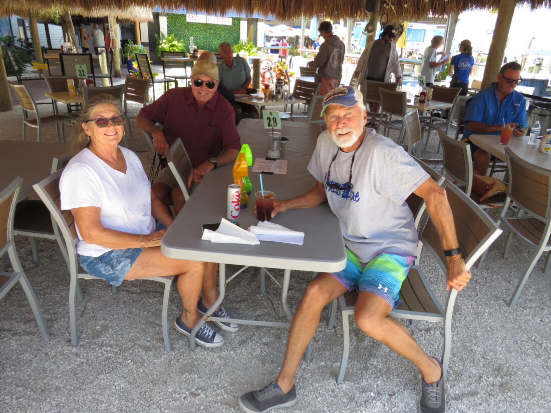 At Cruisers Appreciation Day this past week, Barby was enjoying a cheeseburger and Jeff was digging into some fresh pink Gulf shrimp at Snug Harbor Waterfront Restaurant as part of a complimentary meal organized by the Fort Myers Beach Anchorage Advisory Committee. The committee raised funds from a host of local businesses to support the event, as a way to give back to boaters like the Greenes who stay at the town’s mooring field.