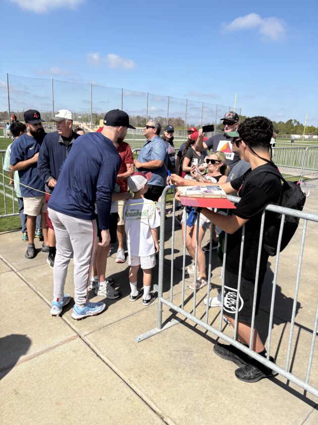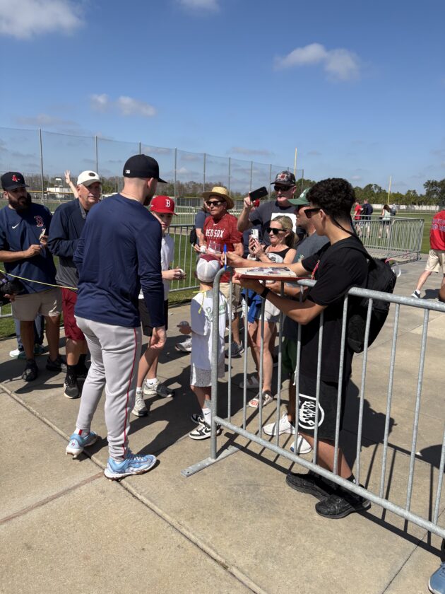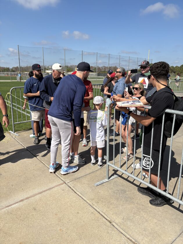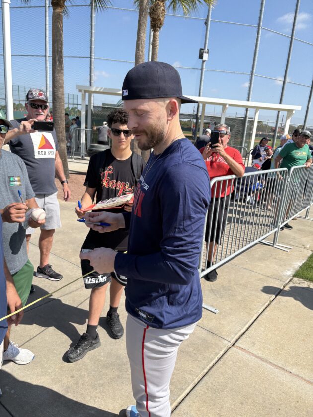 In his first batting practice of the spring, Story joined last year’s rookie Kristian Campbell, and the team’s two new acquisitions from the Milwaukee Brewers – infielders Caleb Durbin and Andruw Monasterio. Story put some big swings on display while also watching the hitting mechanics of his fellow infielders closely as they stepped into the batting cage.